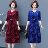 Novo Estilo Primavera e Outono 2025 Roupa para Mãe Vestido de Veludo de Manga Longa para Mulheres de Meia-Idade, Elegante Vestido para o Trabalho