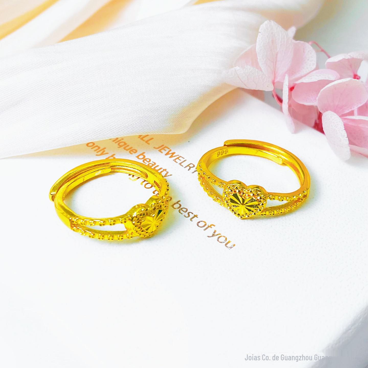 Anel de Coração Gravado Antigo Banhado a Ouro que Não Desbota para Mulheres, Estilo de Nicho de Luxo High-End, Anel Aberto Ajustável