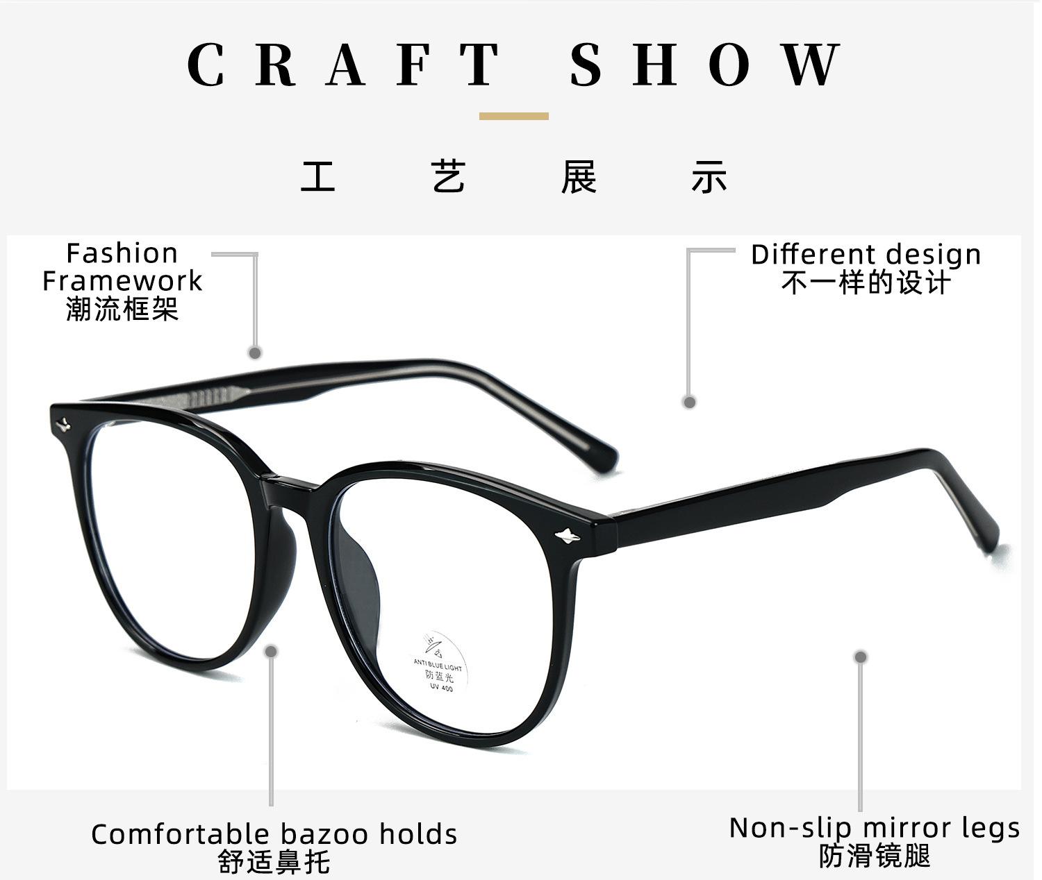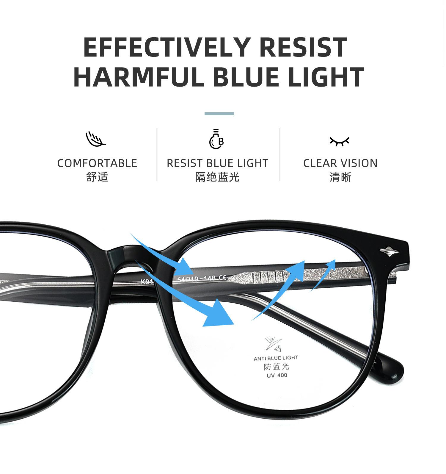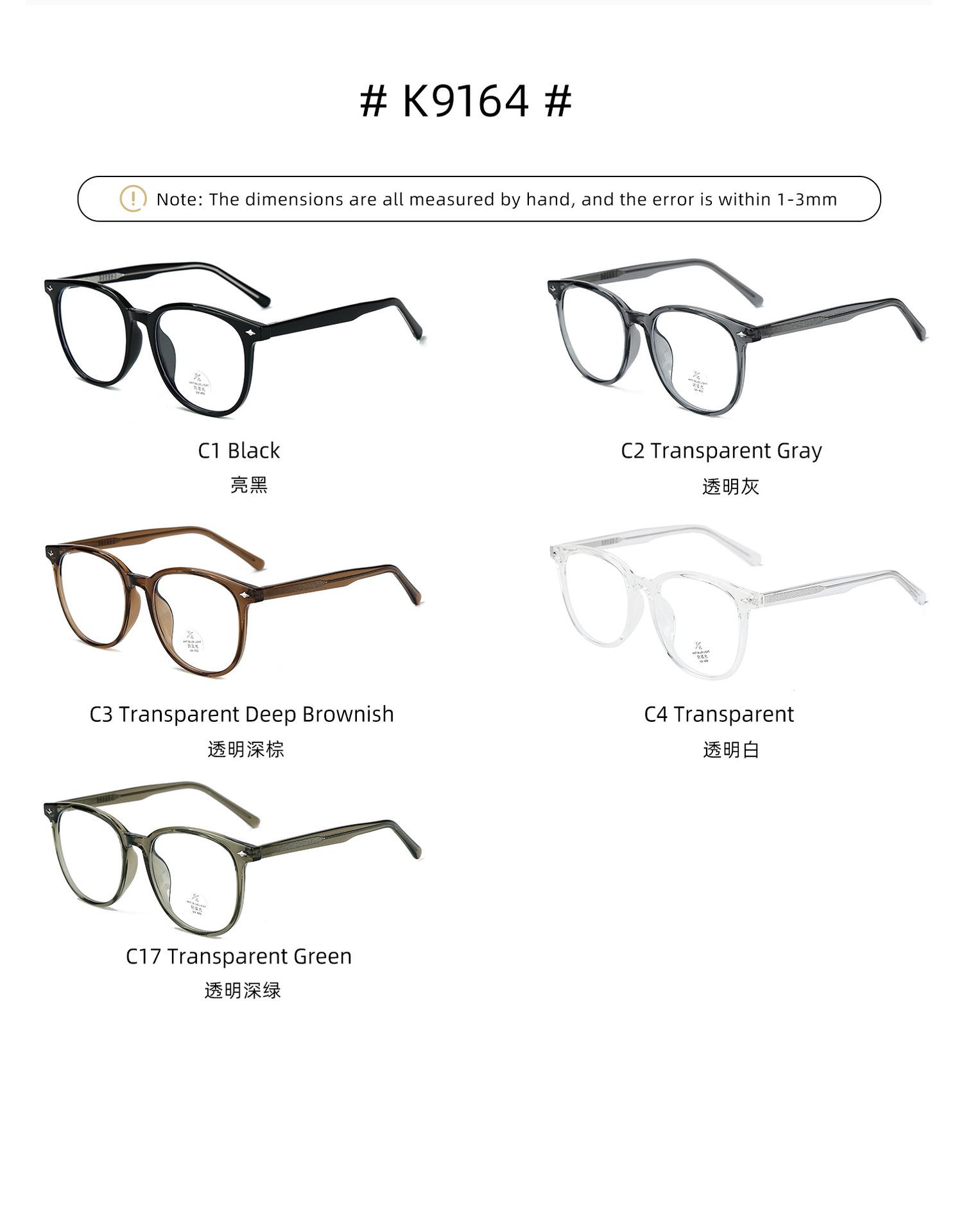 K9164 Óculos de sol anti-luz azul femininos estilo coreano TR armação placa perna grande armação lisa all-match miopia armação