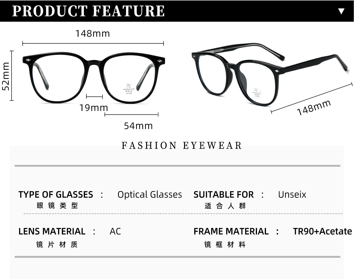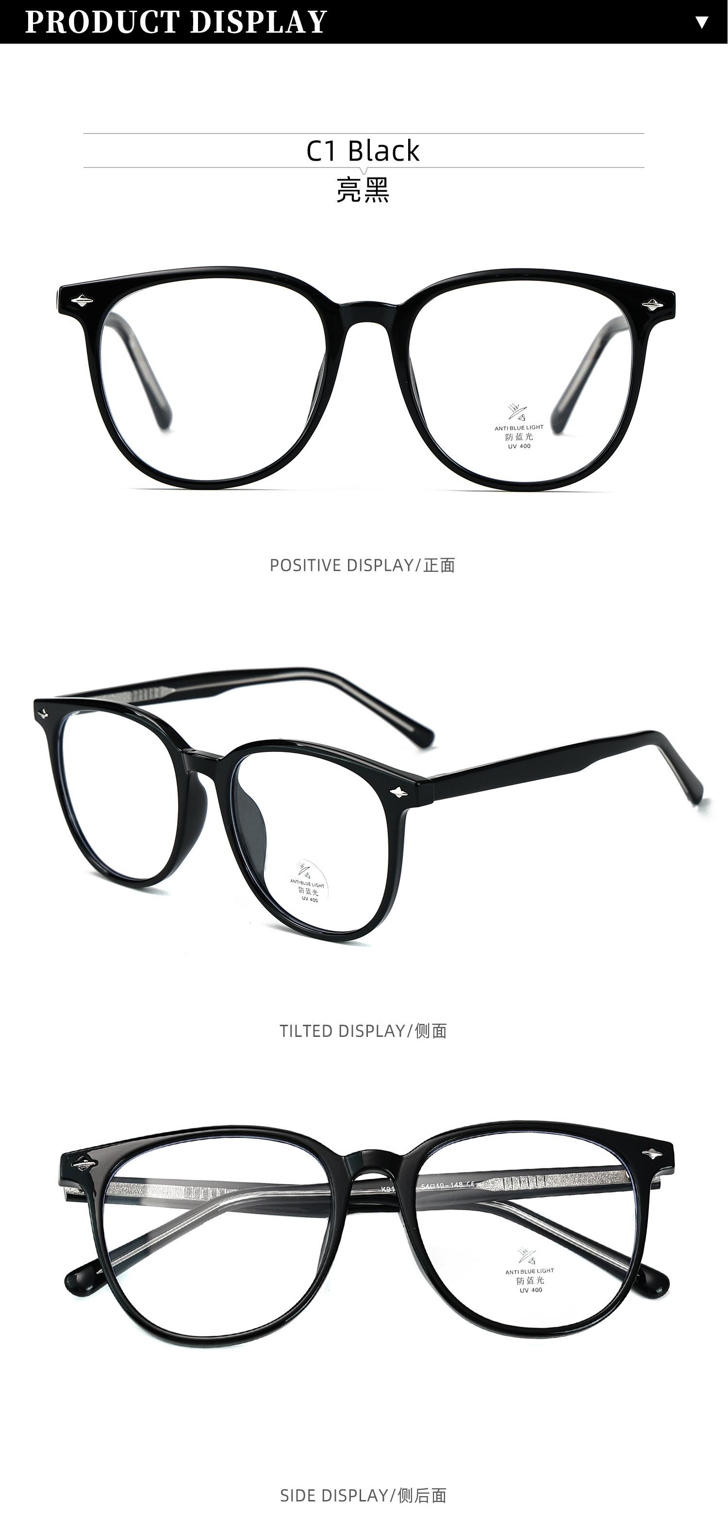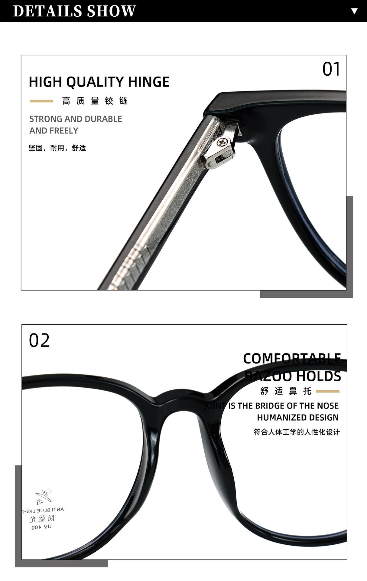 K9164 Óculos de sol anti-luz azul femininos estilo coreano TR armação placa perna grande armação lisa all-match miopia armação
