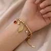 Pulseira Feminina Moda Europeia e Americana Nicho Temperamento Transfronteiriço Simples Zircônia Diamante Folhas Contas Corrente de Aço Titânio Joias