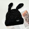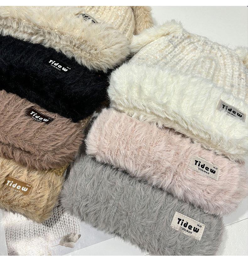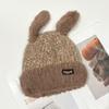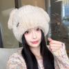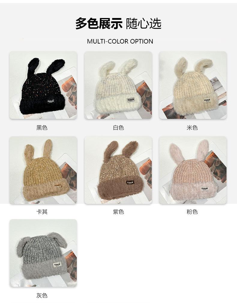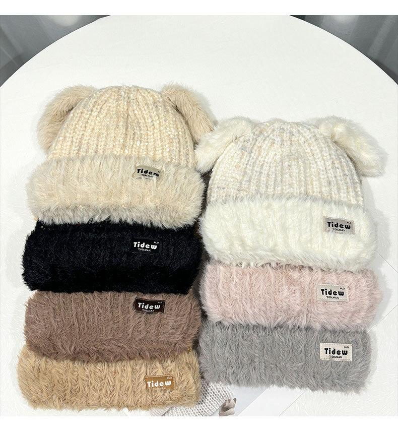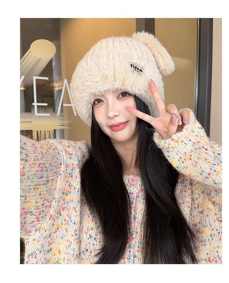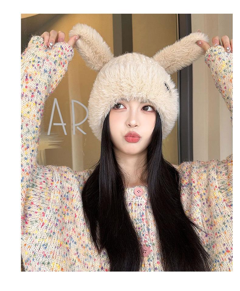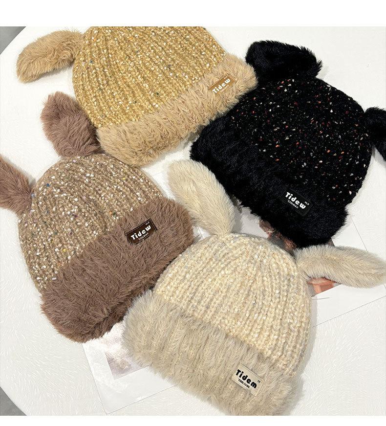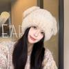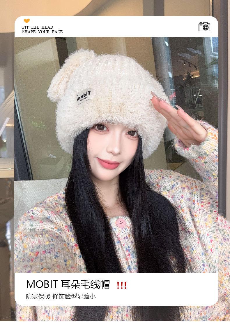 Chapéu de Outono e Inverno Feminino Novo Chapéu de Lã Quente com Forro de Lã e Orelha de Coelho Espessado para Exteriores Chapéu de Pelúcia Pequeno Chapéu de Malha