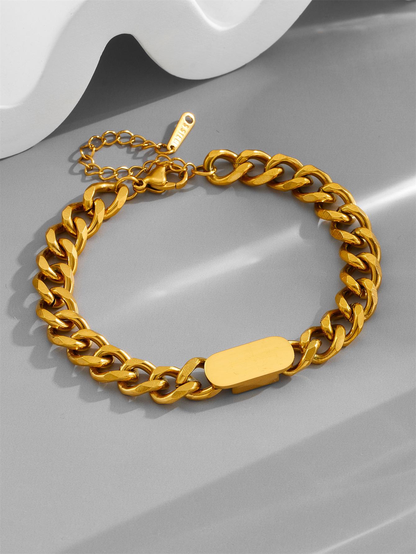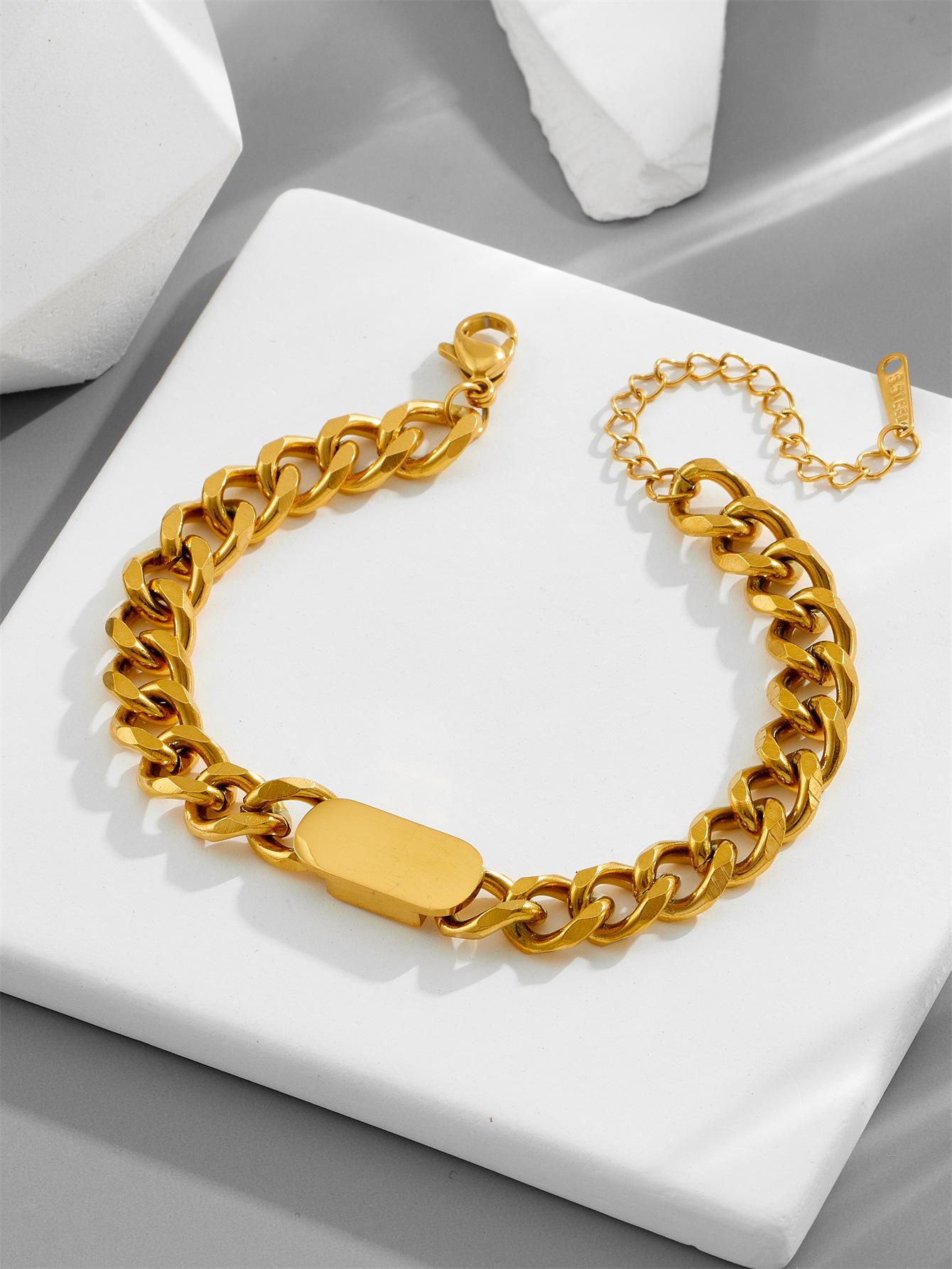 Pulseira Simples de Corrente Grossa de Aço Titânio Feminina Design de Nicho Ins Oval de Alta Qualidade Ouro 18k Pulseira da Moda Celebridade da Internet