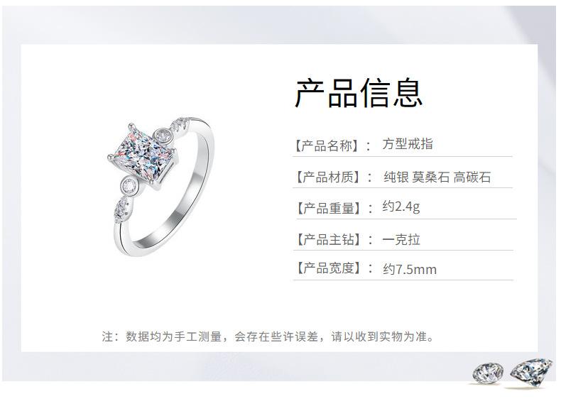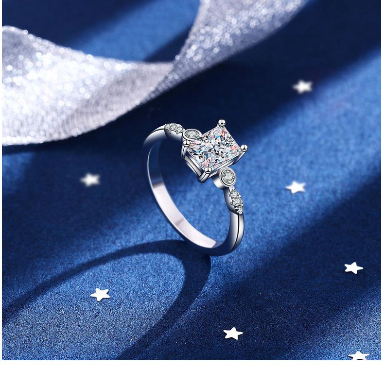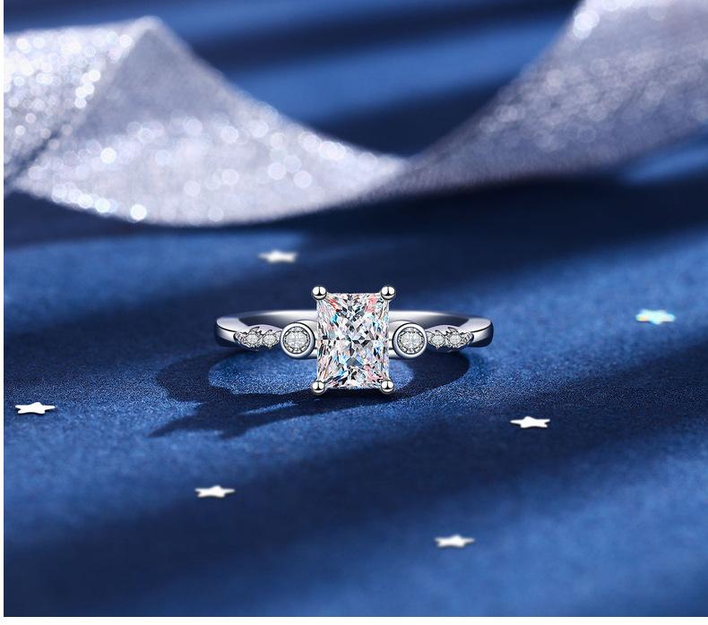 Anel de moissanita de comércio exterior transfronteiriço Anel retangular de diamante Mosan de 1 quilate Anel feminino de formato especial Anel de casamento banhado a platina de prata 925