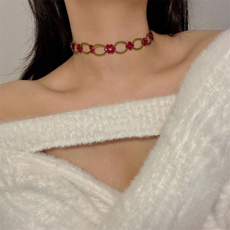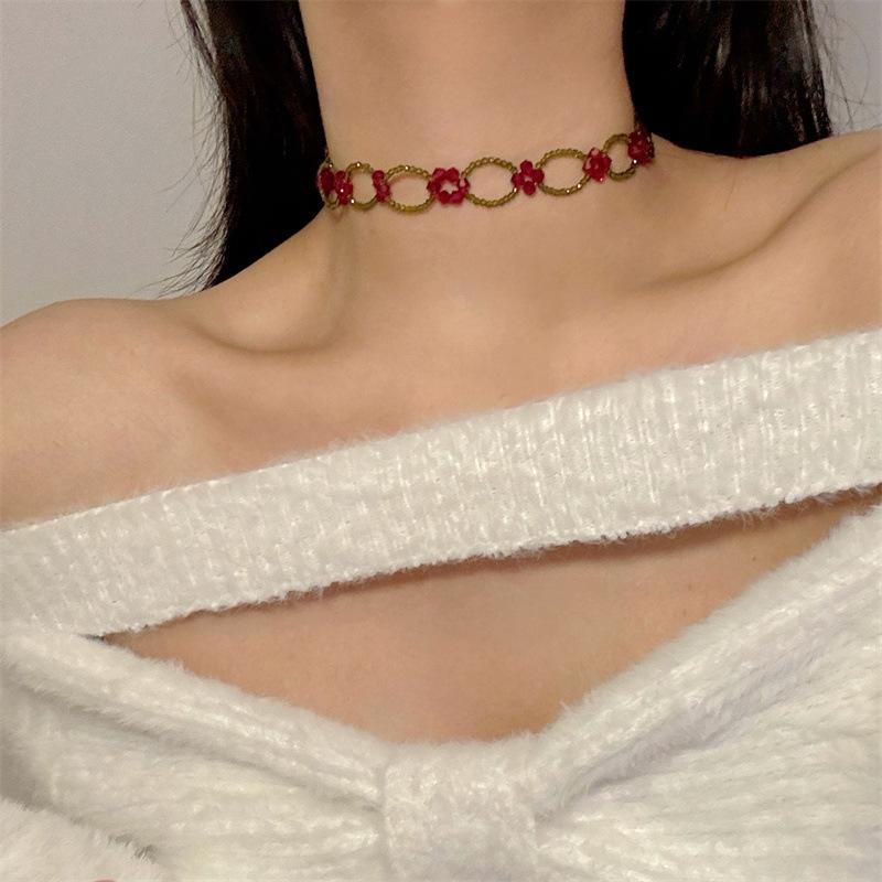 Gargantilha preta clavícula corrente trançada feminina trançada à mão espinélio colar vintage