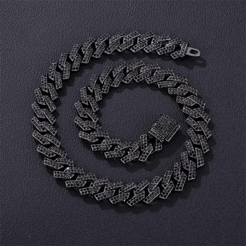 Conjunto de corrente cubana de diamantes de hip hop europeu e americano de 15 mm com zircônia preta colar masculino de marca de moda colar de zircônia personalizado