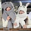 Chapéu e cachecol Fox Ears All-in-One Chapéu Feminino Inverno Bonito Pelúcia Forrado de lã Engrossado Quente Conjunto de duas peças com pescoço