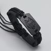 Pulseira de Couro Masculina Estilo Punk Europeu e Americano Pulseira de Couro Cabeça de Lobo Preto Joias Atacado Pulseira Trançada de Corda de Couro