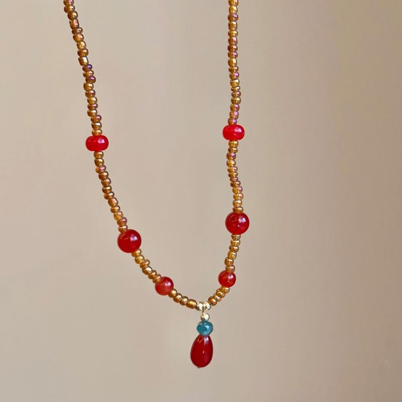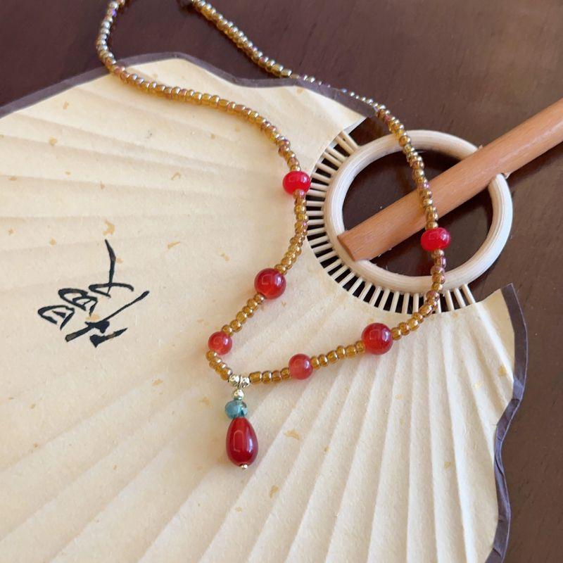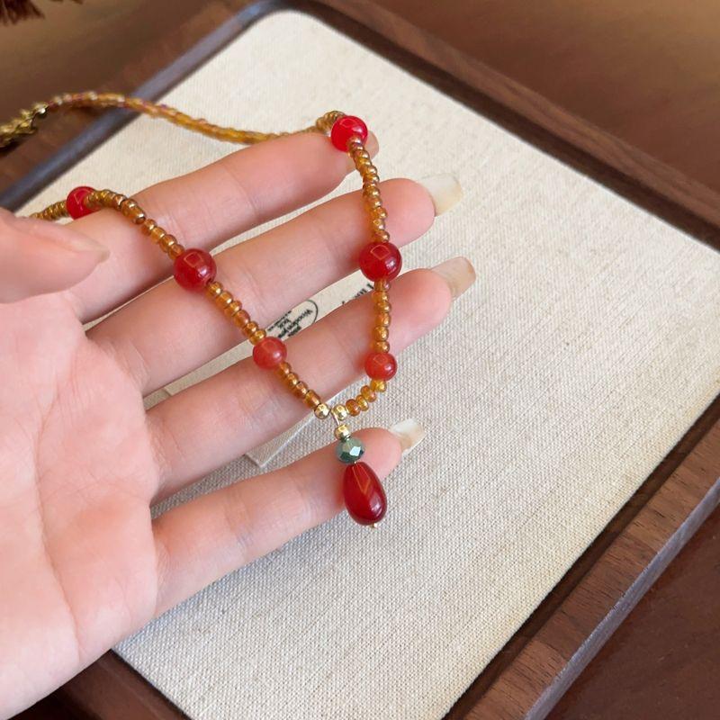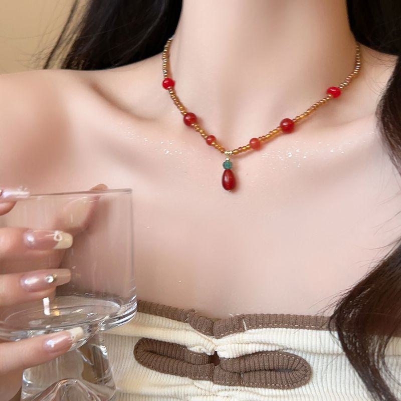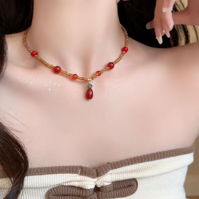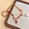 Novo colar chinês com pingente de gota d'água vermelha feminino 2024 verão estilo étnico retrô colar corrente estilo nacional corrente de clavícula