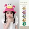 Chapéu infantil de outono, chapéu grande fofo para bebês, aba dupla face, chapéu de pescador bordado, chapéu de bacia para meninos e meninas, proteção solar de viagem