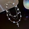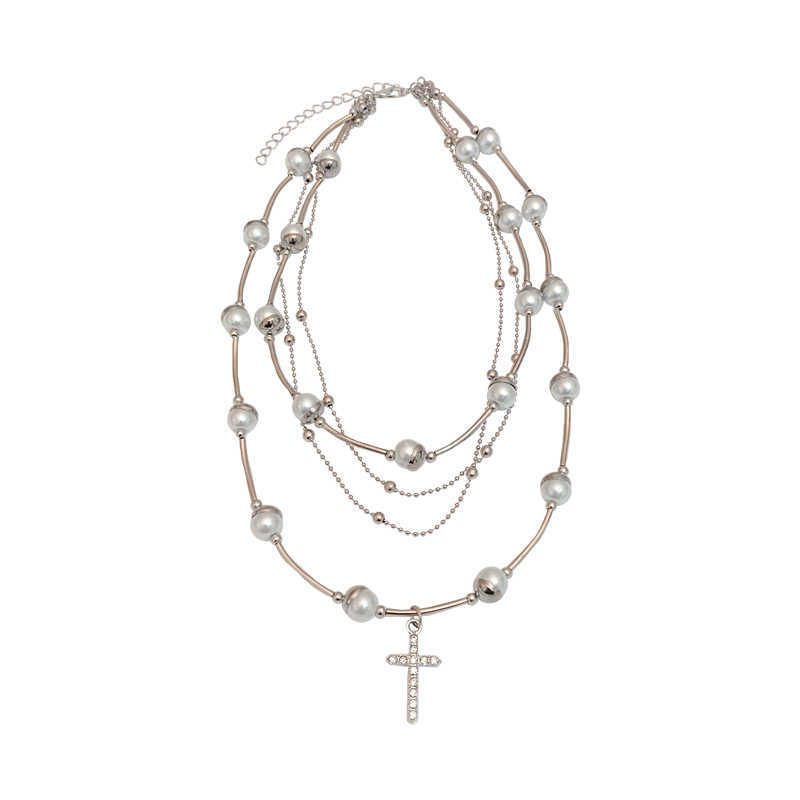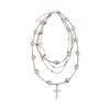 Multilayer cross pearl necklace