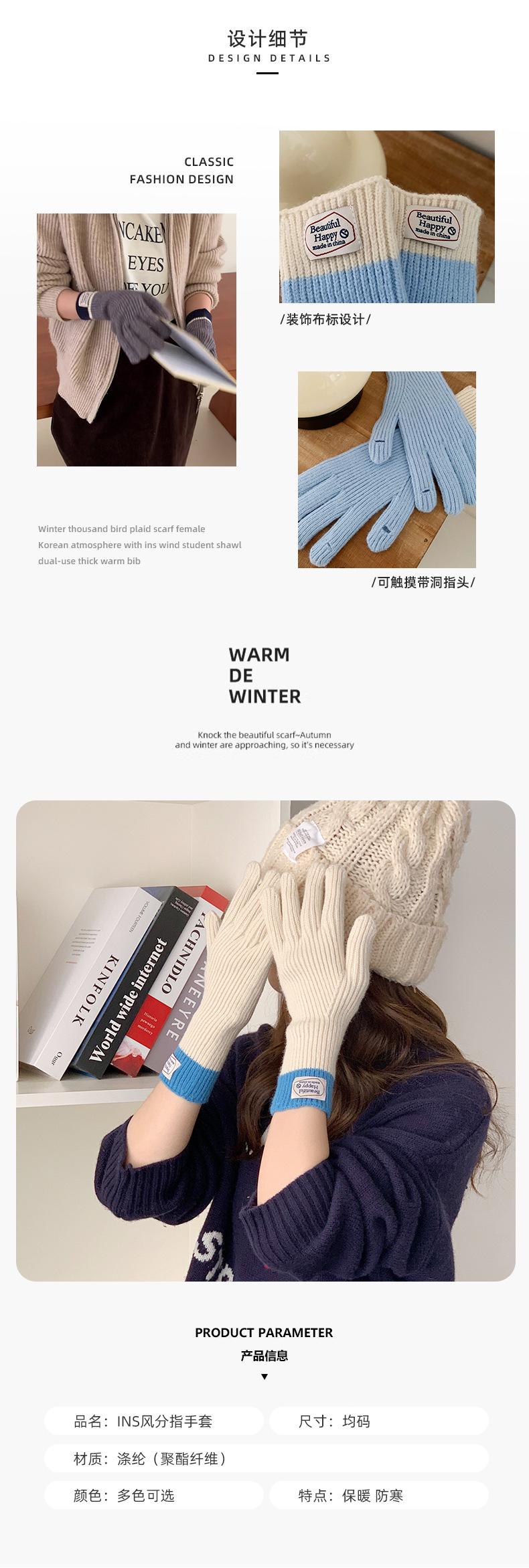 Outono e Inverno Novos Tricotados Luvas de Cinco Dedos Estilo Ins Moda Quente de Alto Valor Ciclismo Frio e À Prova de Vento Luvas de Lã