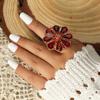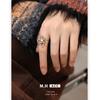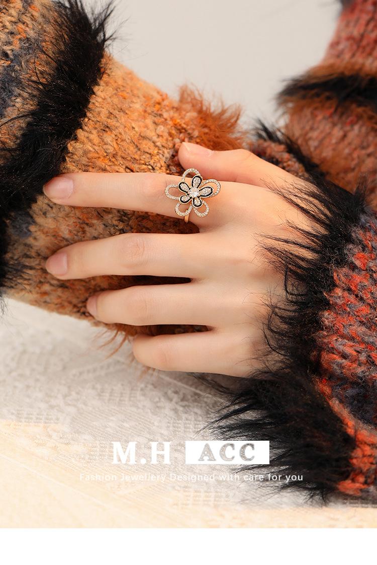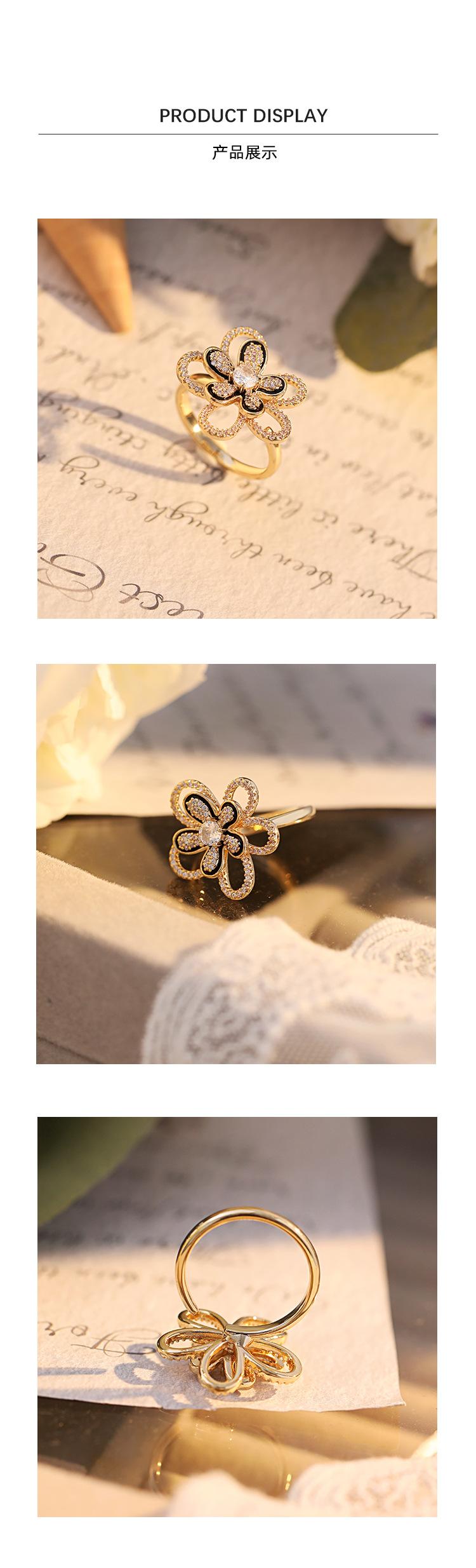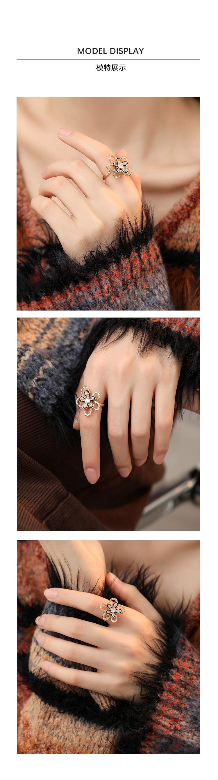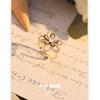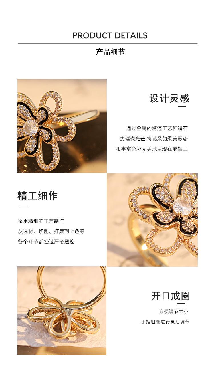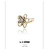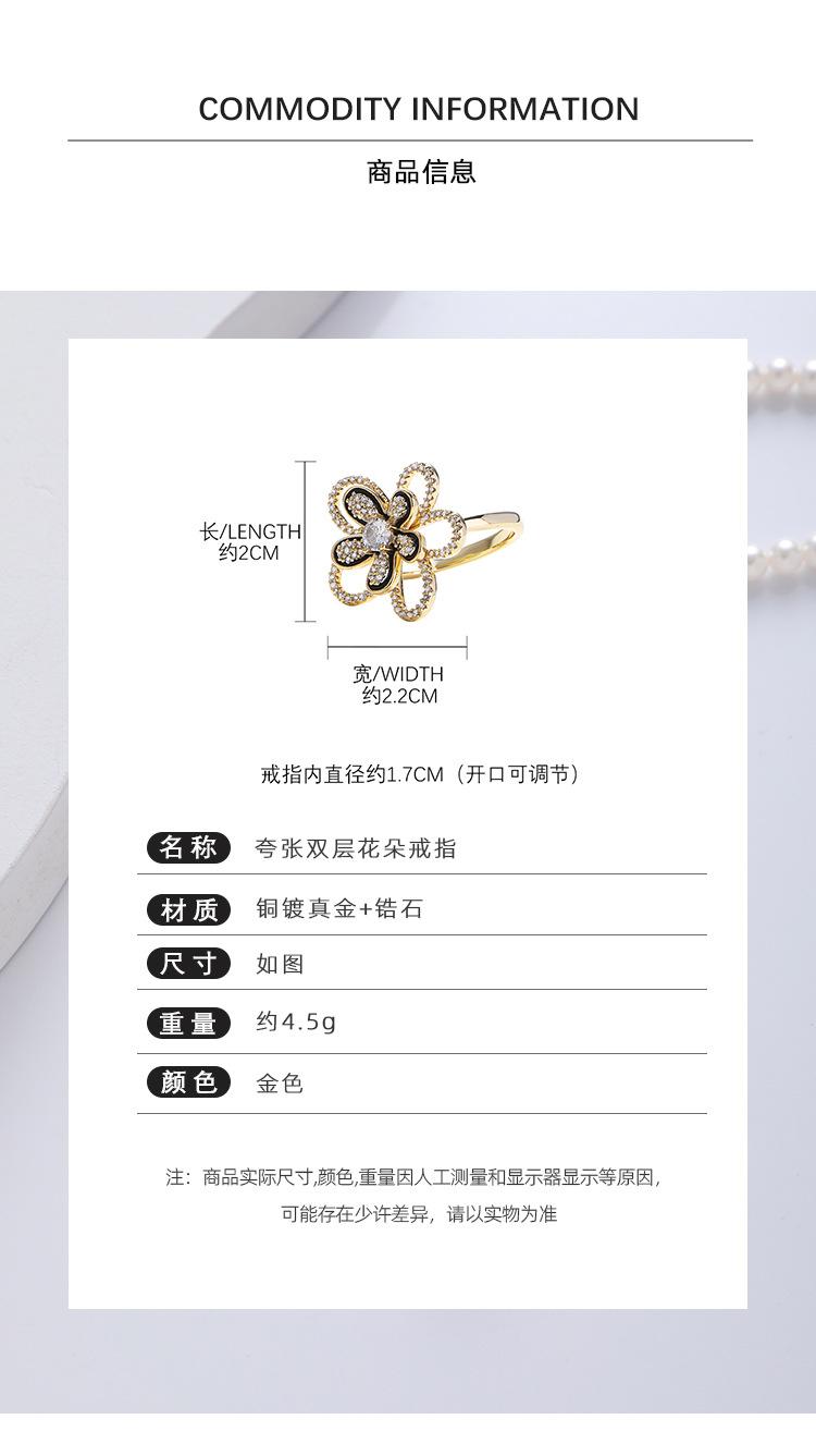 Anel de Flor Exagerado em Camada Dupla Feminino Luxo Leve Dourado Anel Aberto Novo Artístico Retrô Zircônia Anel de Dedo Atacado