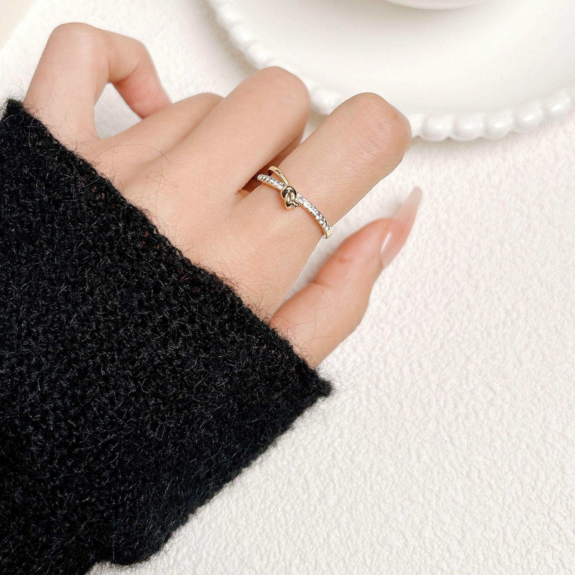 Anel Elegante Assimétrico em Forma Especial com Nó Fechado Anel Elegante Nicho Feminino High-End Luxo Acessível Moda Elegante Anel de Dedo Indicador