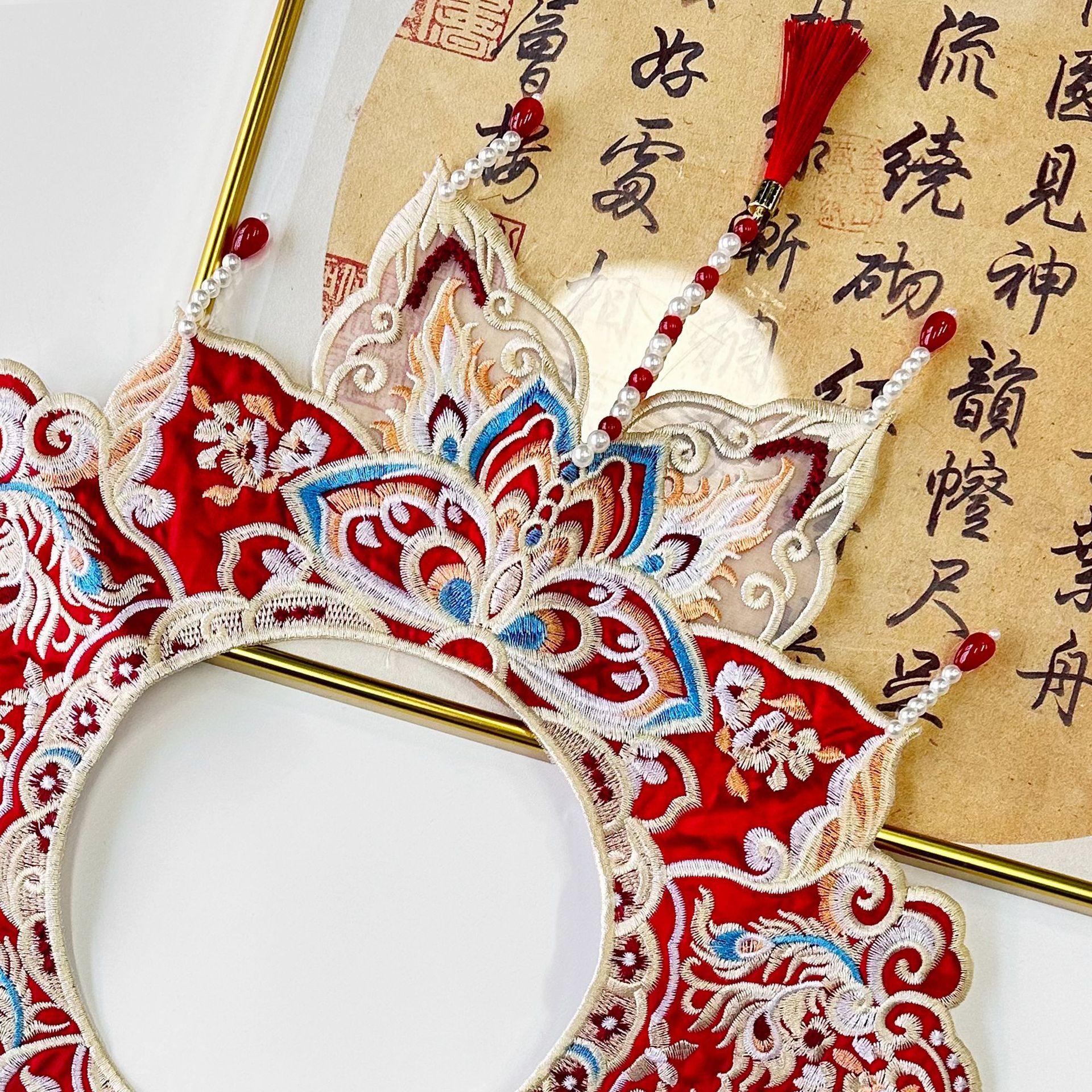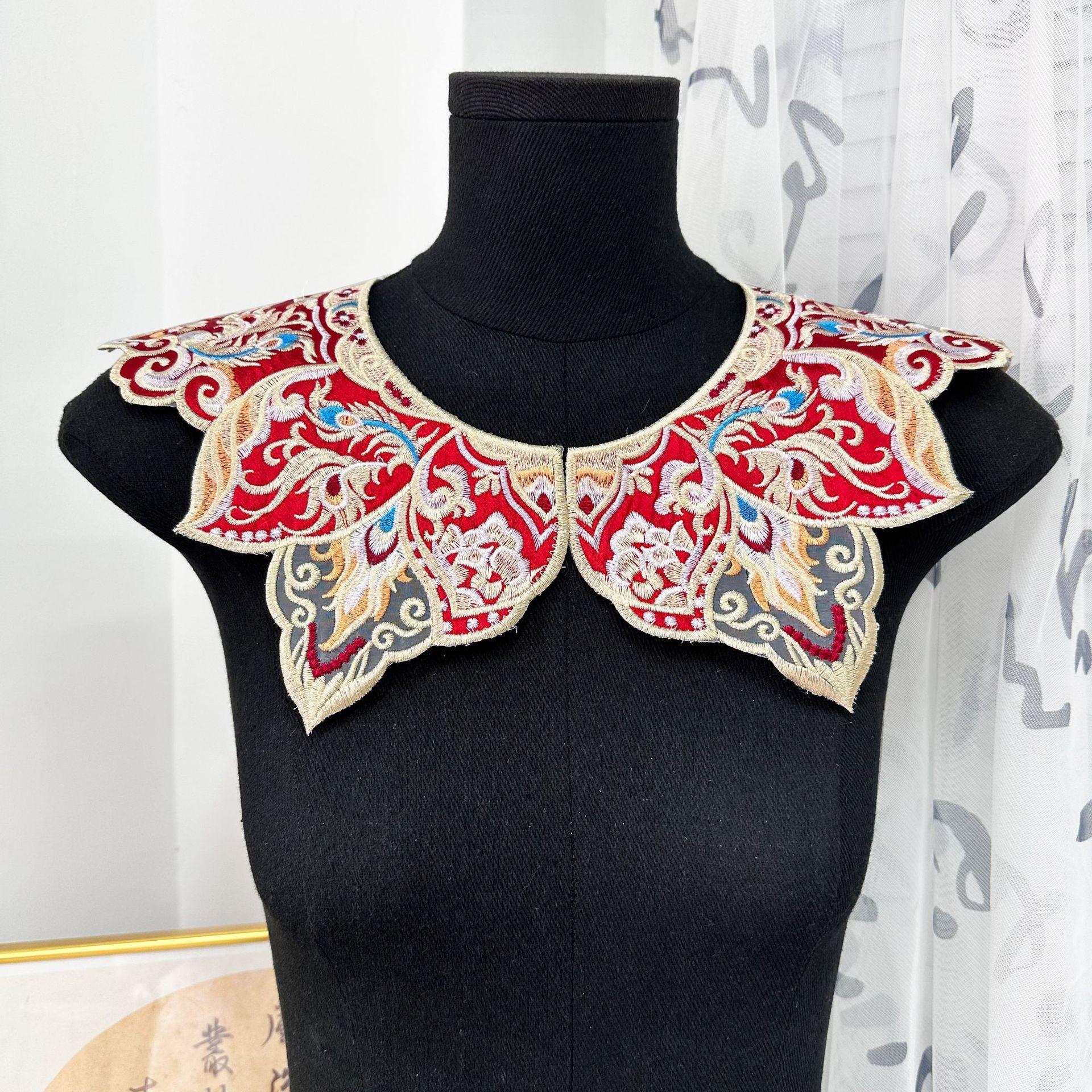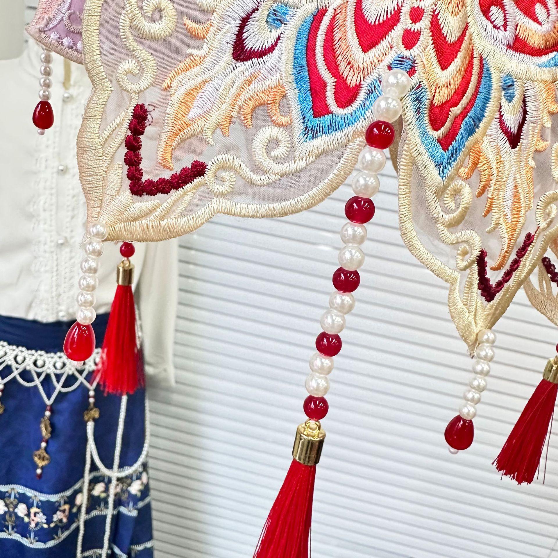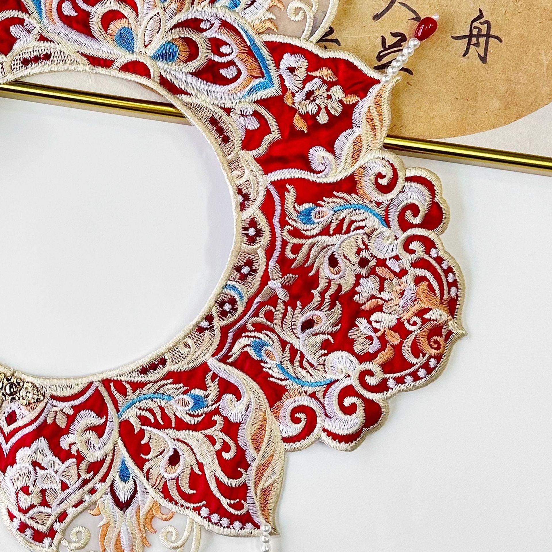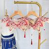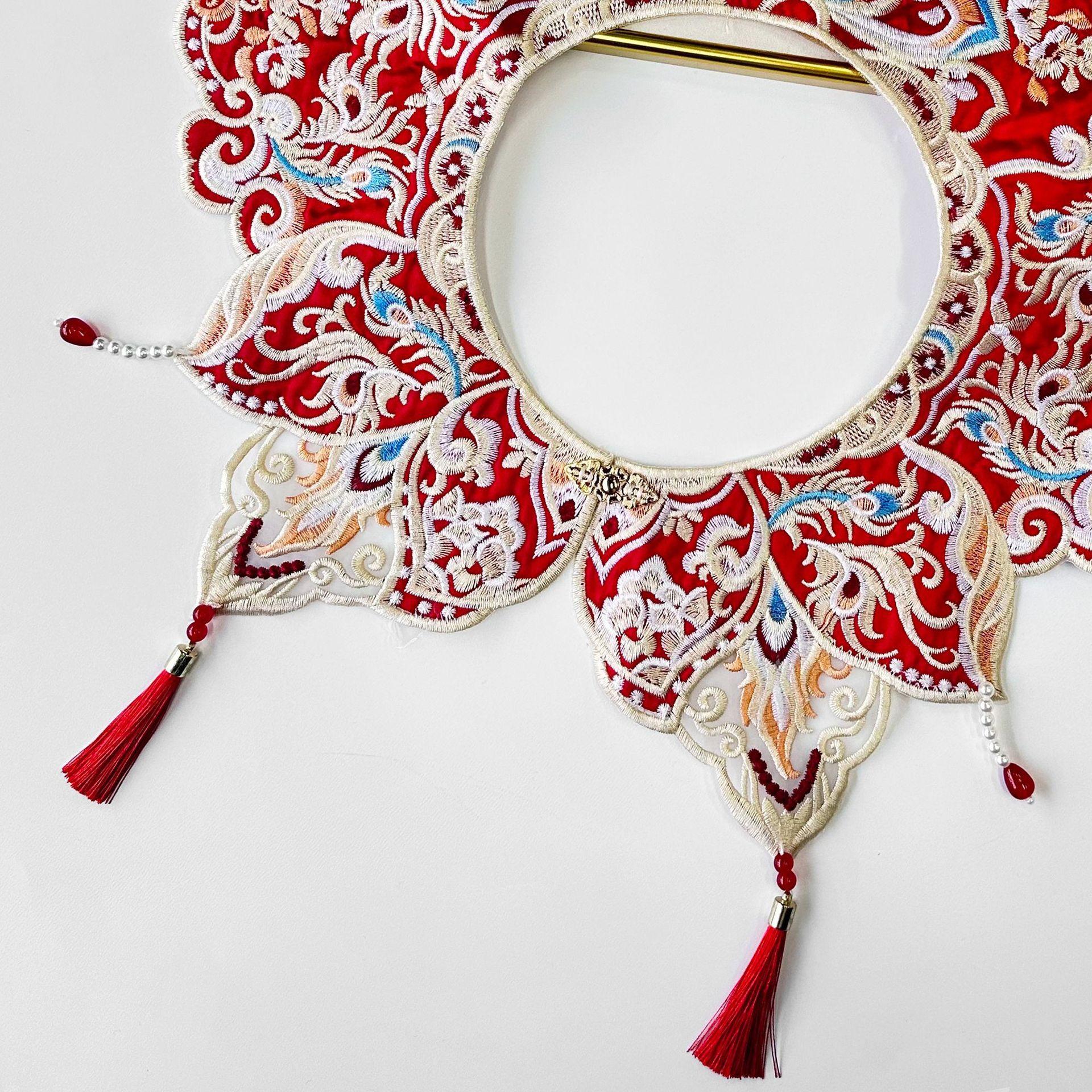 Estilo étnico vermelho Hanfu Nuvem Ombro Quatro Estações Universal Combinando Feminino Novo Estilo Chinês Saia de Cara de Cavalo Pingente de Borla Gola Falsa Gola Falsa