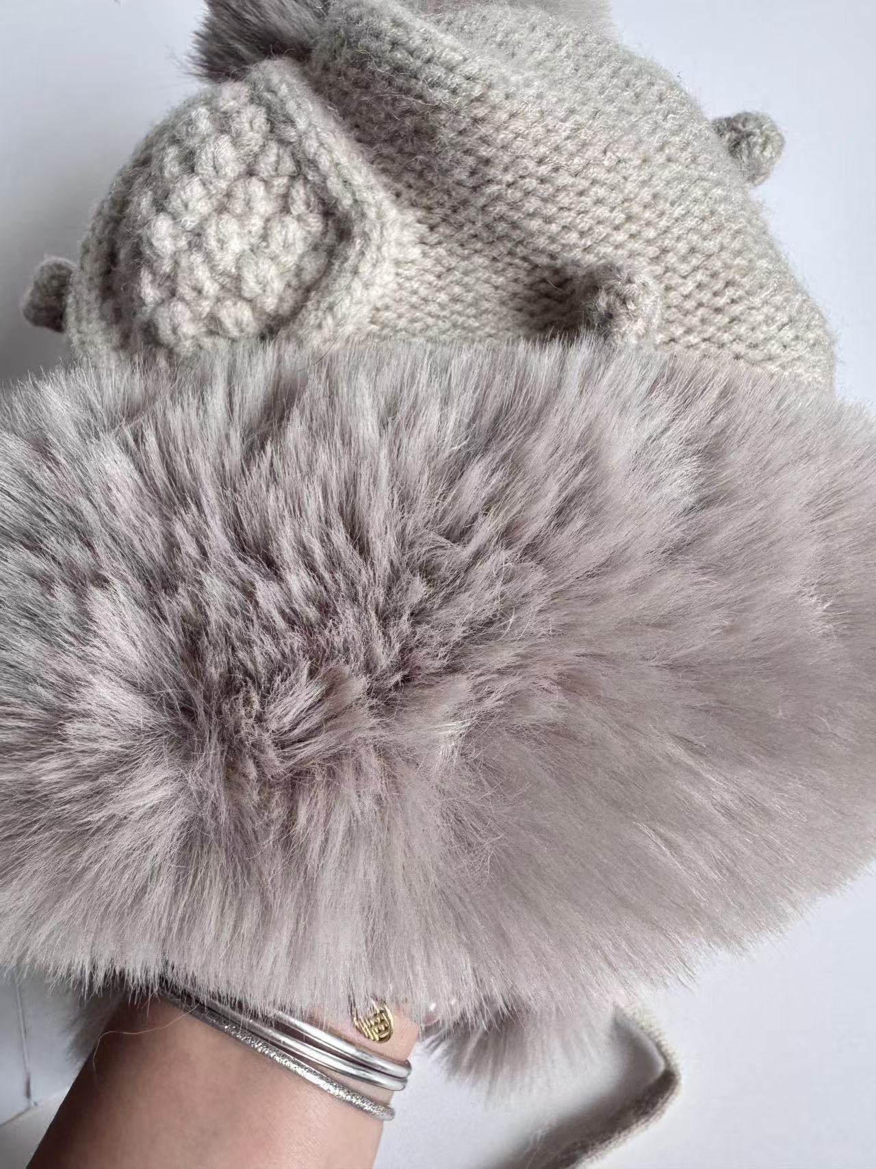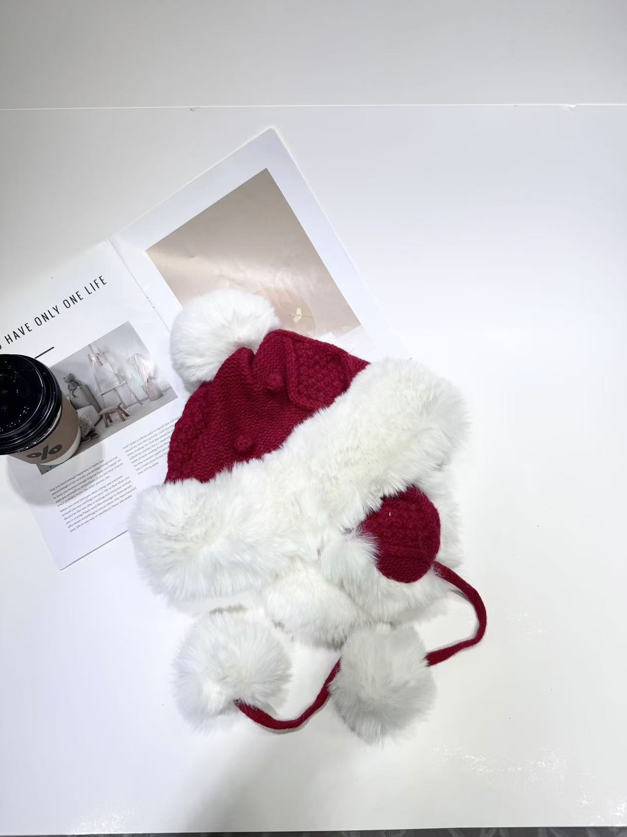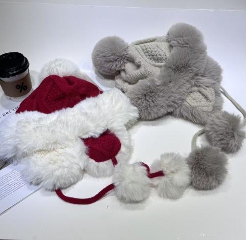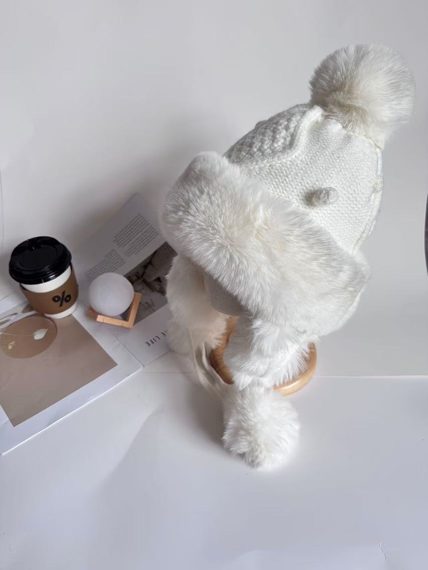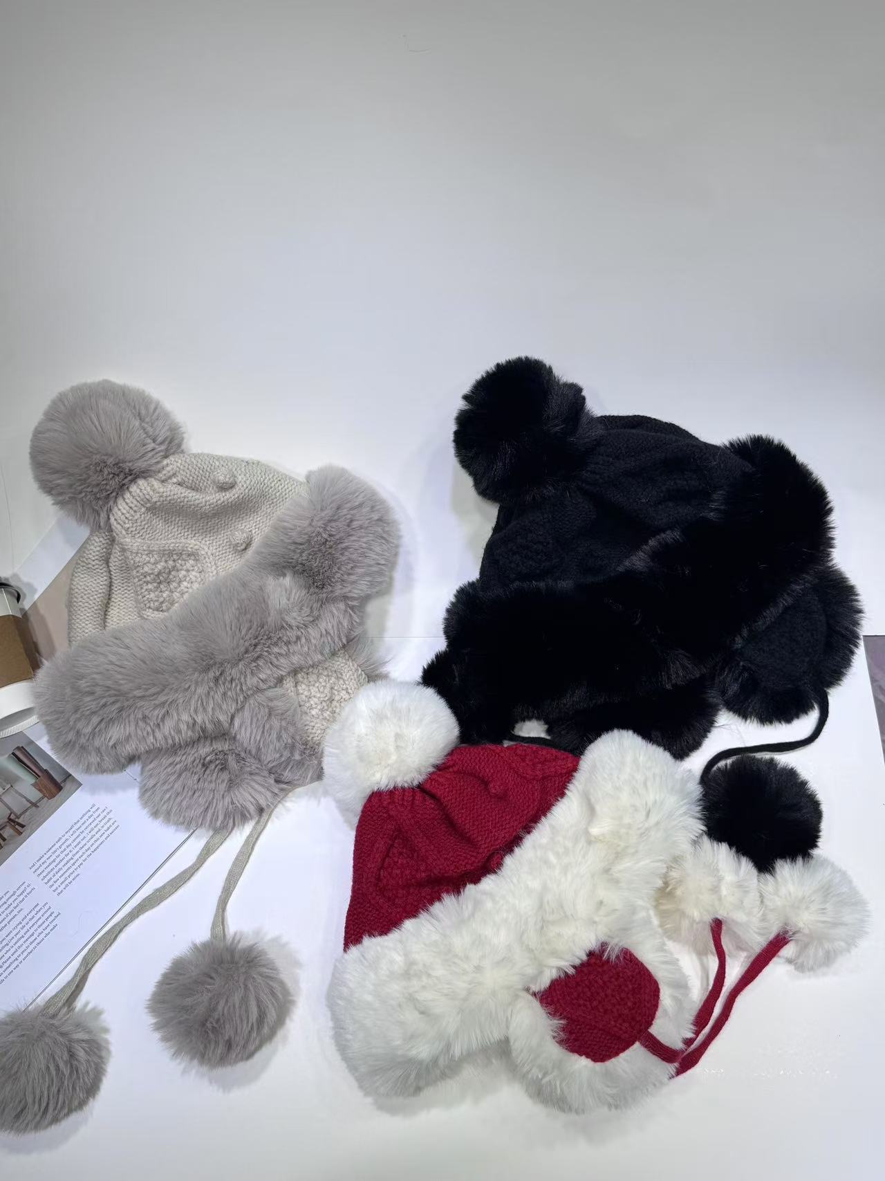 Chapéu de pelúcia Lei Feng feminino inverno forrado de lã engrossado quente bola de pelo chapéu de malha ciclismo à prova de vento frio proteção para orelhas chapéu de lã