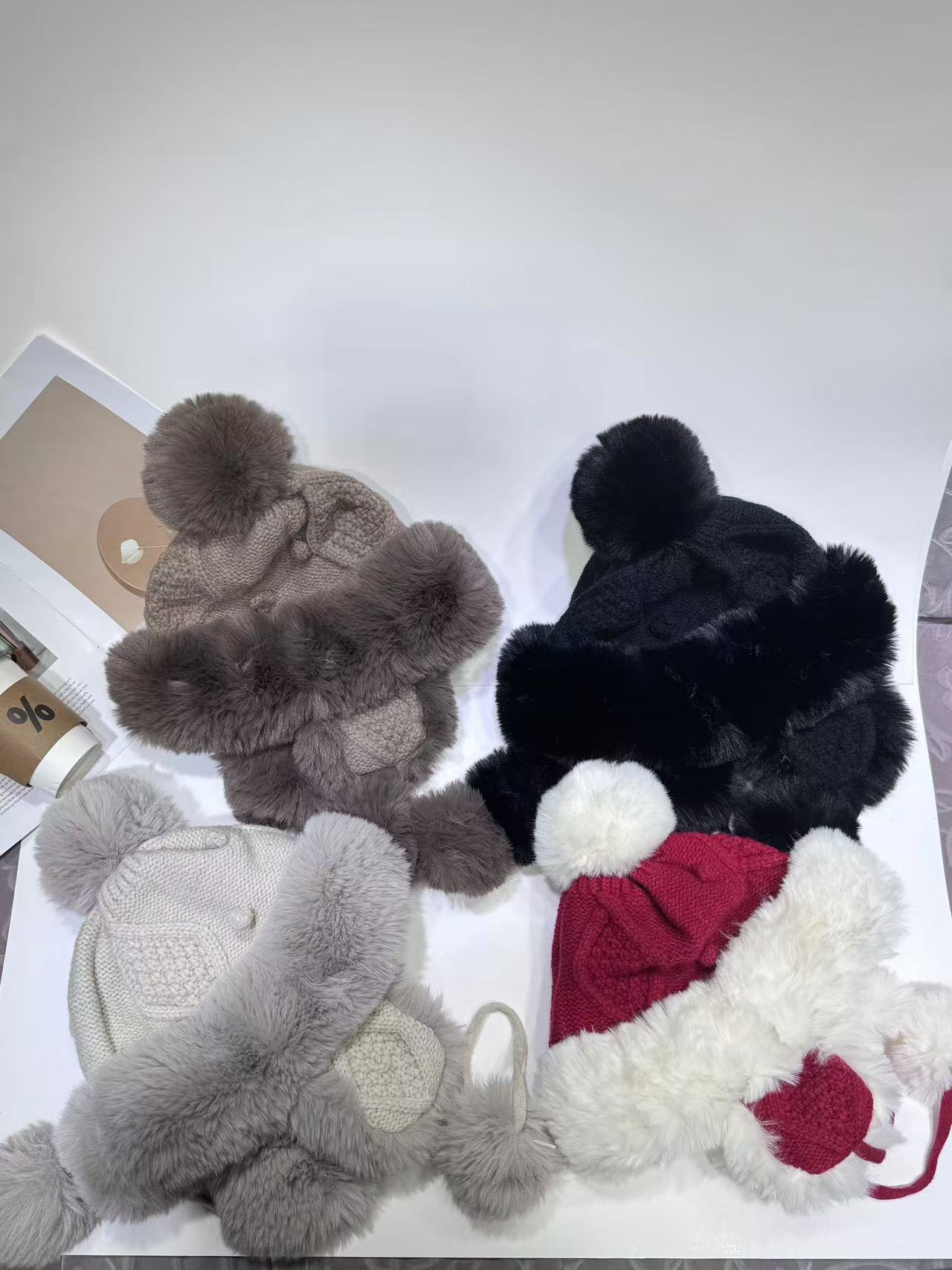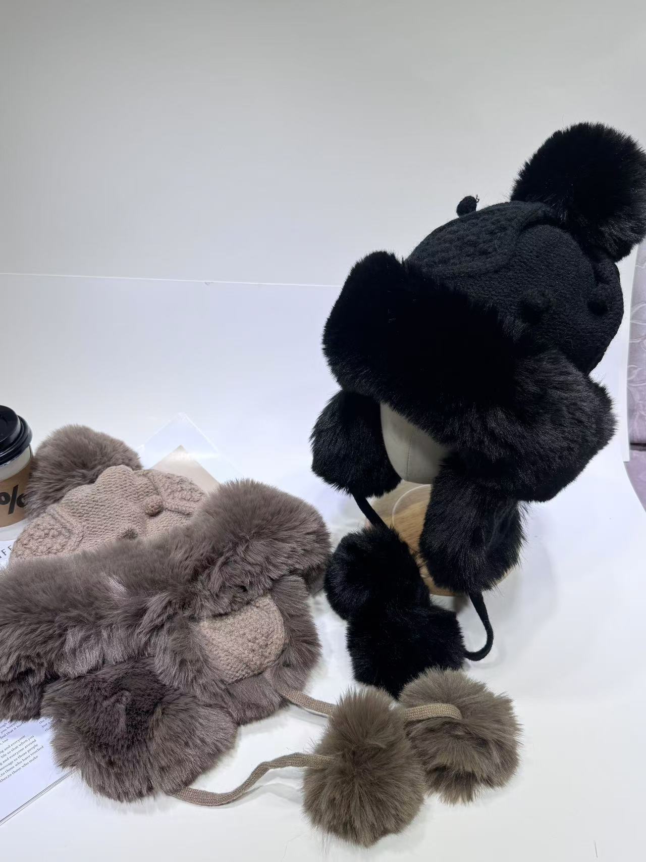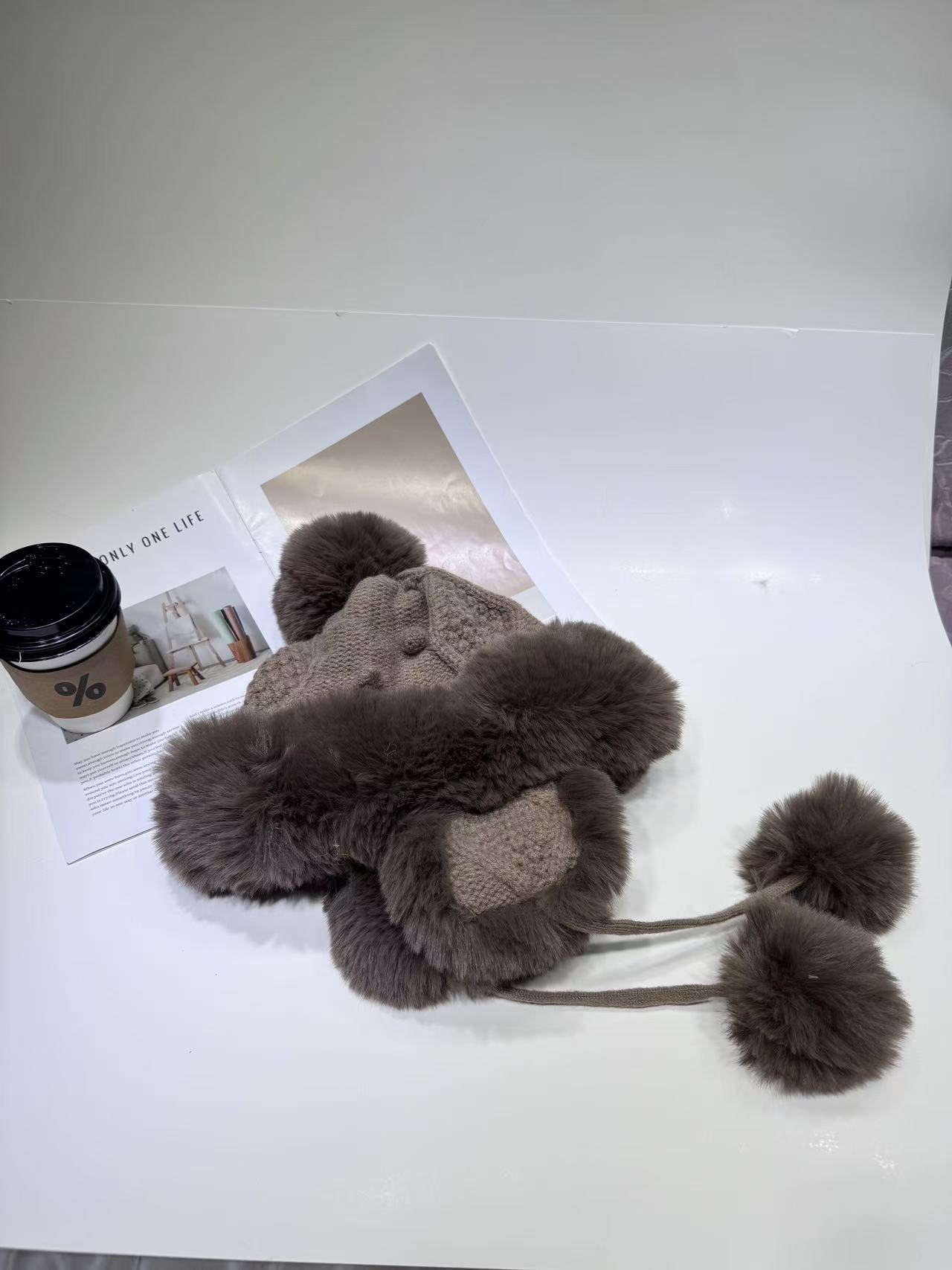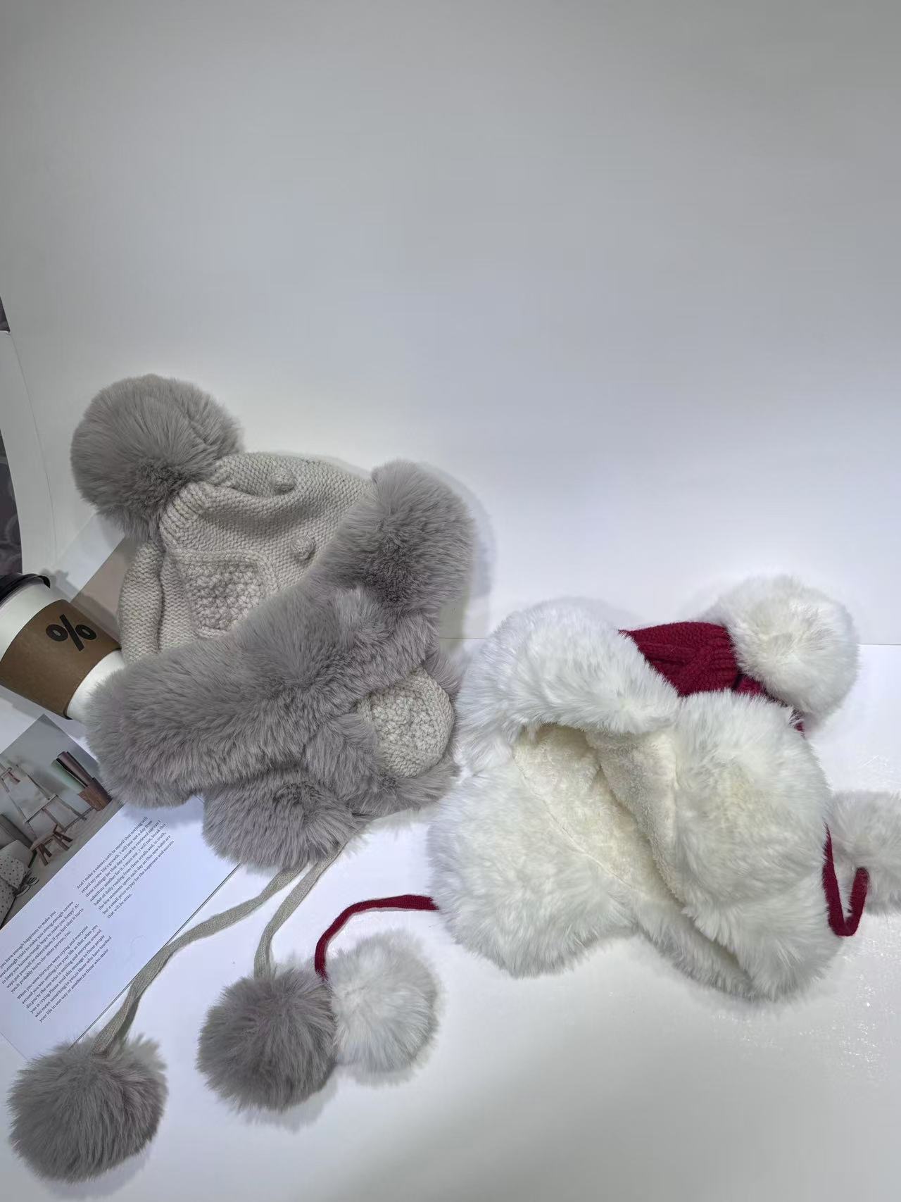 Chapéu de pelúcia Lei Feng feminino inverno forrado de lã engrossado quente bola de pelo chapéu de malha ciclismo à prova de vento frio proteção para orelhas chapéu de lã