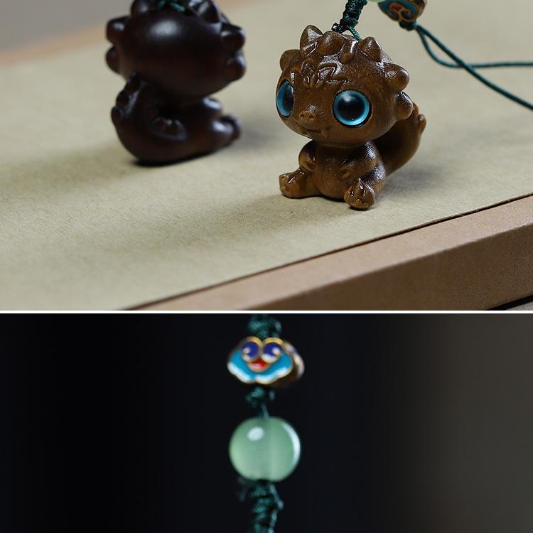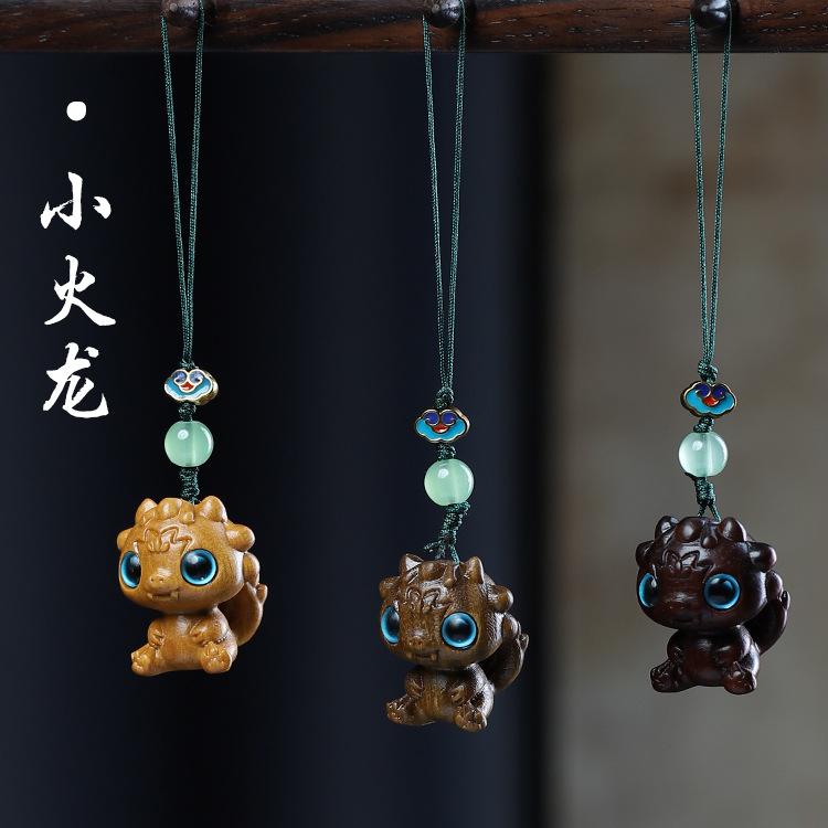 Chaveiro de carro com pingente de dragão de fogo pequeno de sândalo para homens e mulheres, corrente de telefone celular de dragão fofo, bolsa de ano de vida, acessórios para pendurar