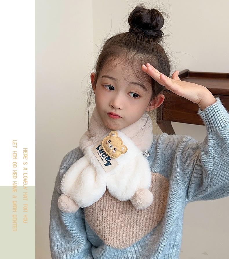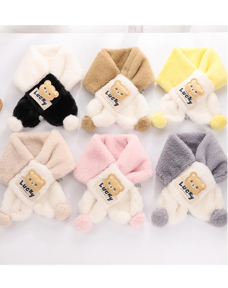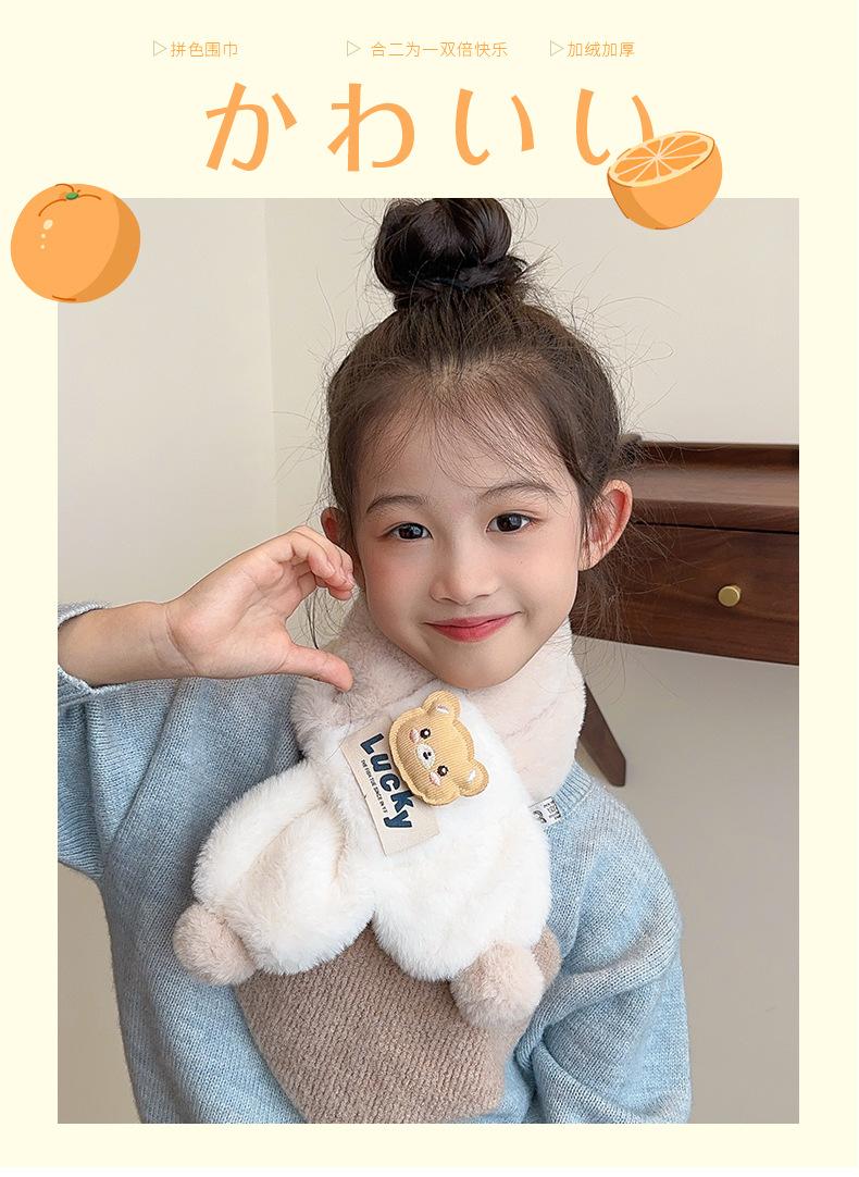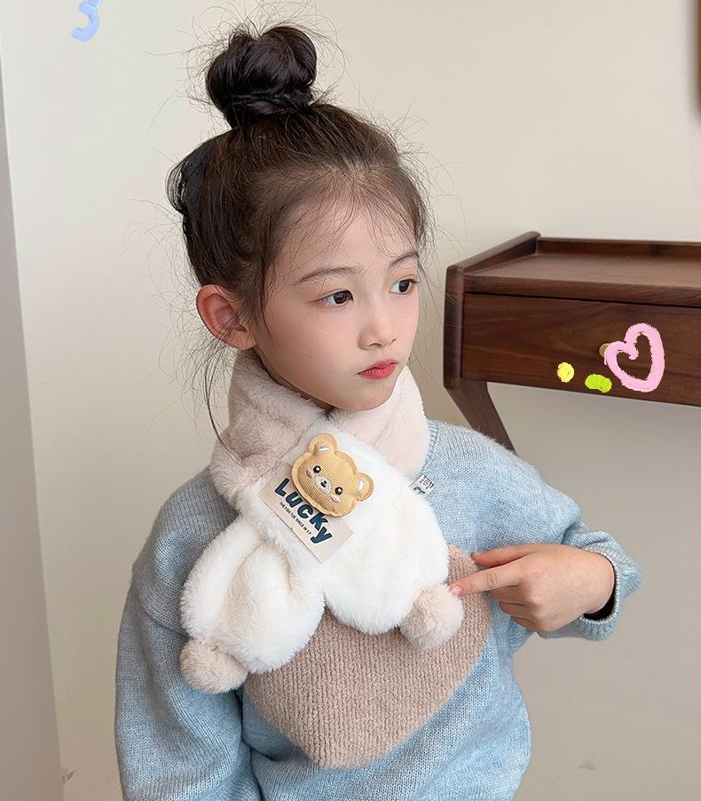 Cachecol infantil para meninos e meninas estilo coreano, cachecol grosso e quente à prova de vento, urso de desenho animado fofo, pelúcia, outono e inverno, manga de pescoço