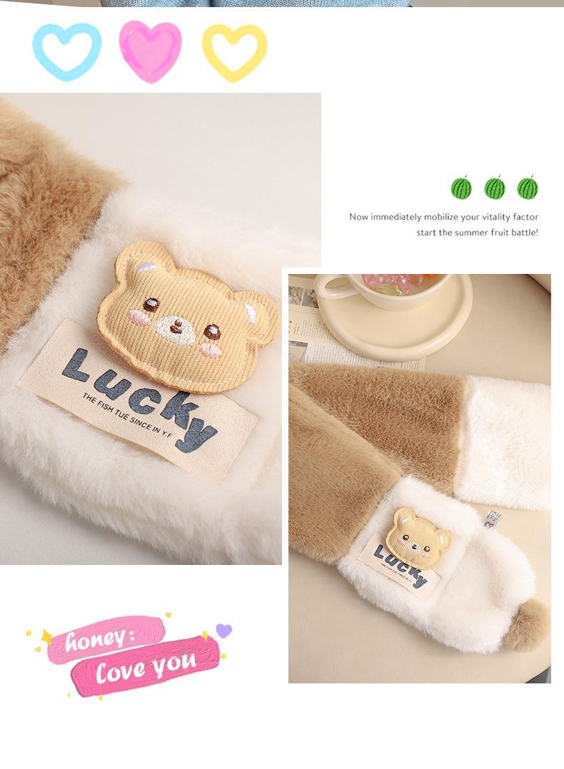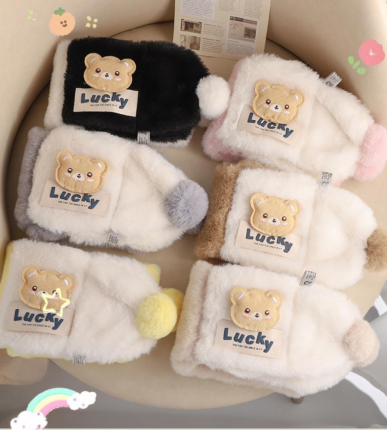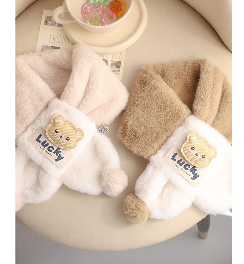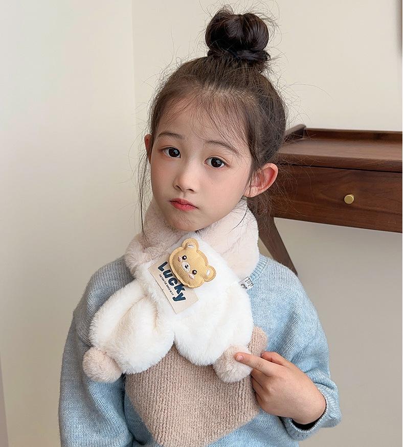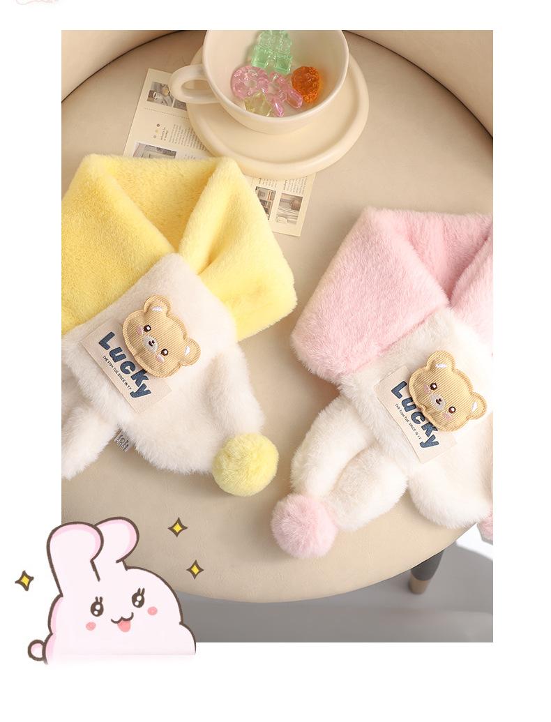 Cachecol infantil para meninos e meninas estilo coreano, cachecol grosso e quente à prova de vento, urso de desenho animado fofo, pelúcia, outono e inverno, manga de pescoço