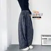 Estilo Casual Cool com Design Único e Estampa de Personalidade Calça de Perna Larga para Mulheres, Outono Tamanho Plus Cintura Alta Drapeada Comprimento Total