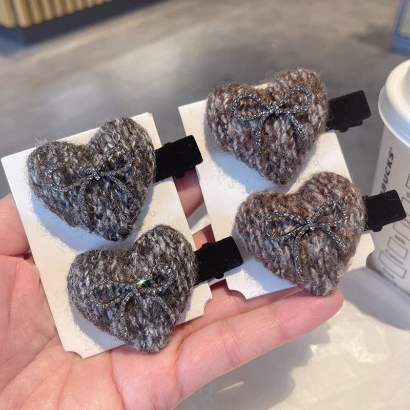 Brown-love bow hairpin, Brown-love bow hair tie, Gray-love bow hairpin, Gray-love bow hair tie