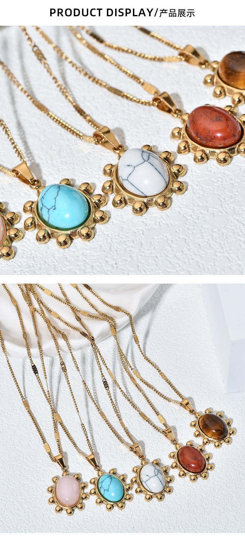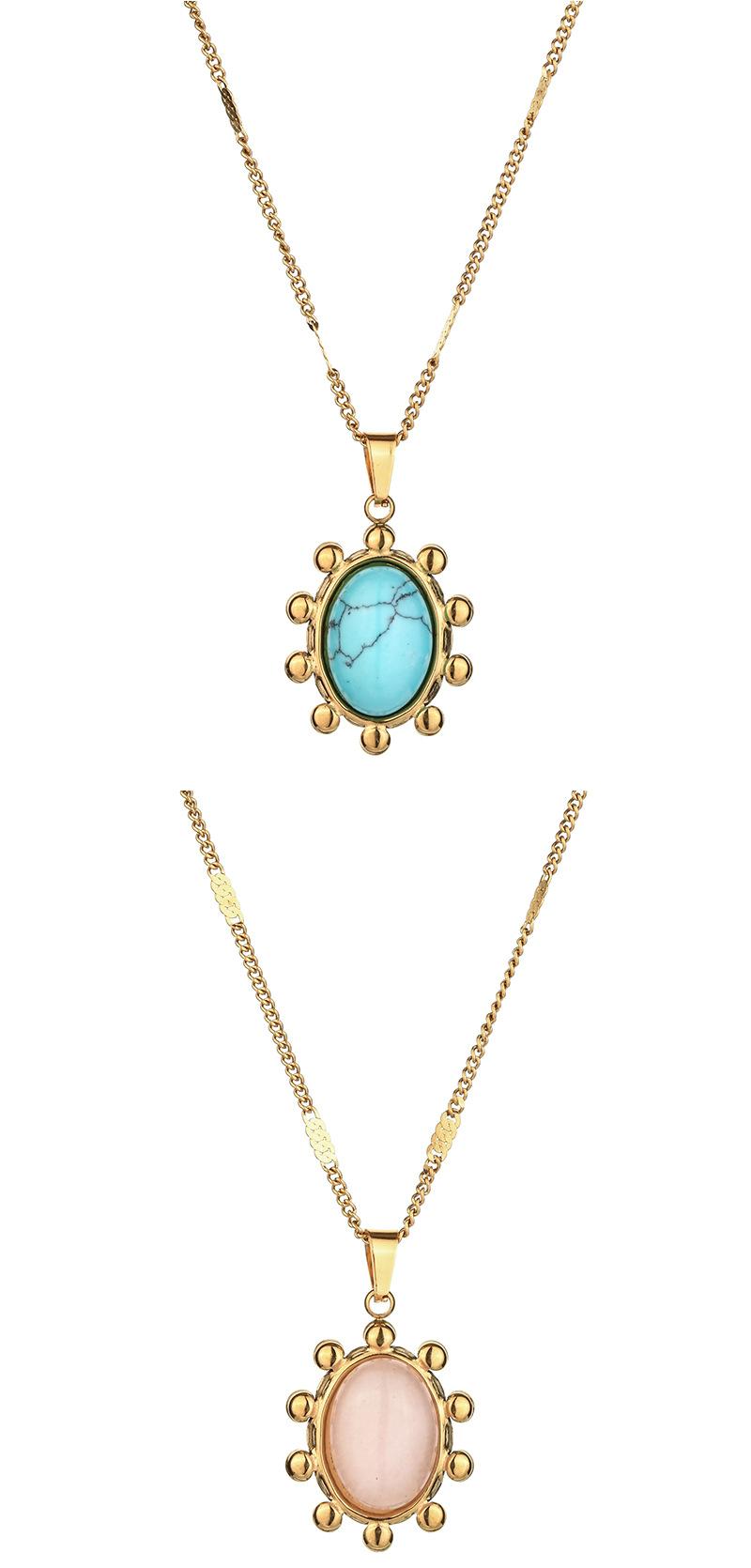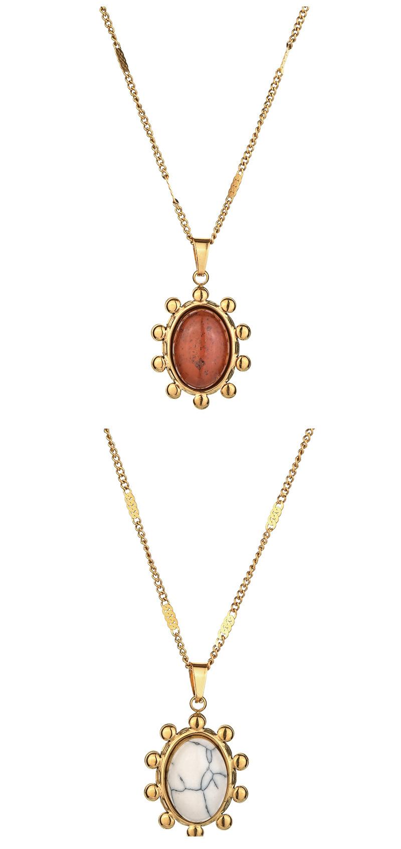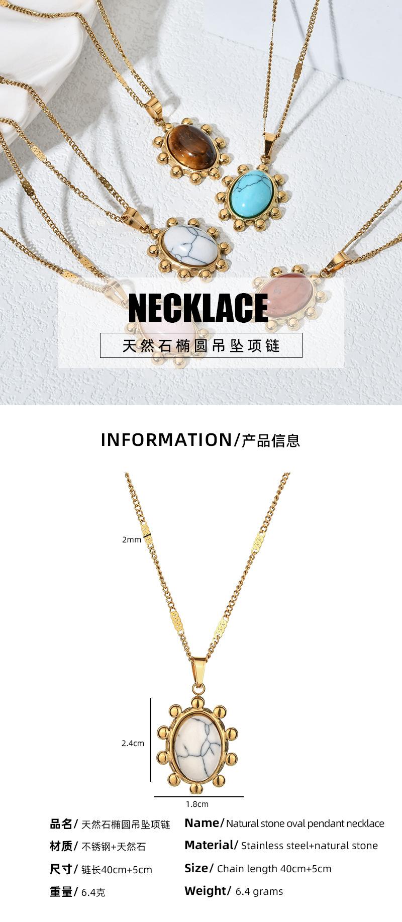 Colar com pingente oval de pedra natural, estilo europeu e americano retrô, leve e luxuoso, design criativo, colar personalizado de nicho