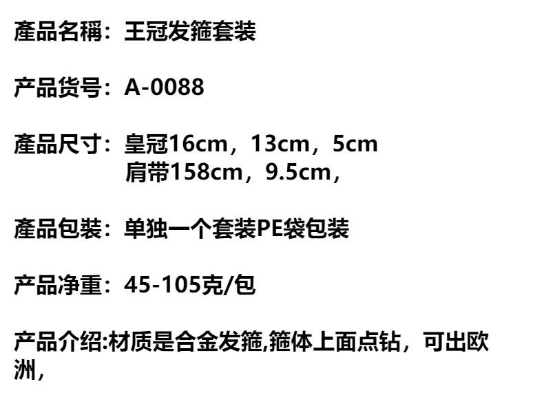 Cross-border hot aniversário alça de ombro festa coroa cocar aniversário rainha/menina conjunto coroa conjunto