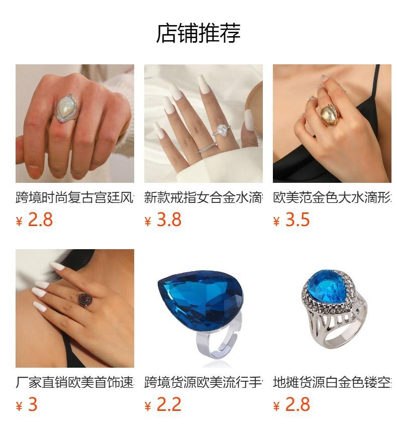 Anel de diamante de estilo frio simples personalizado com tendência de temperamento da moda, estilo japonês e coreano, anel de liga em formato de gota retrô simples