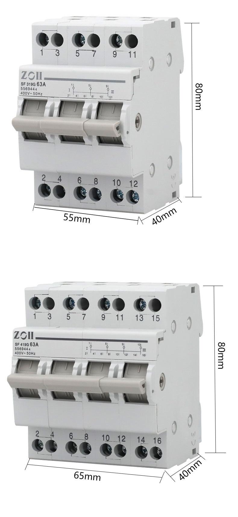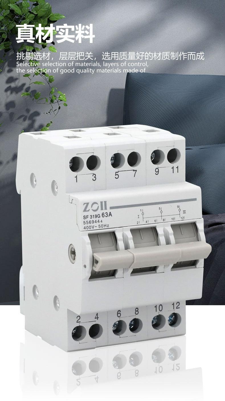 Mini Disjuntor Micro Protetor de Circuito de Alimentação Dupla Tipo Trilho de Isolamento Manual Chave de Conversão de 3 Posições