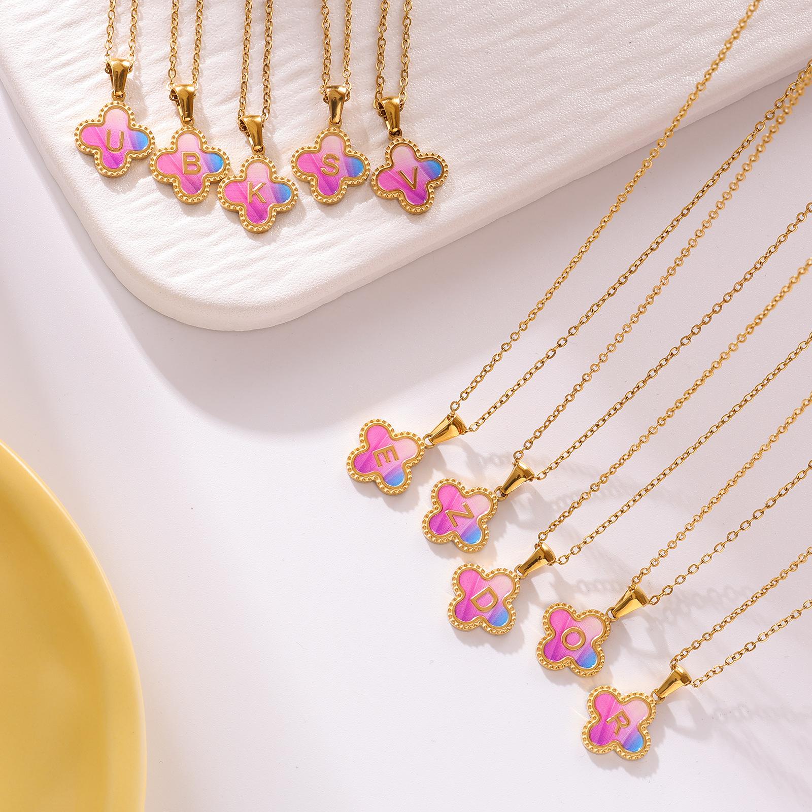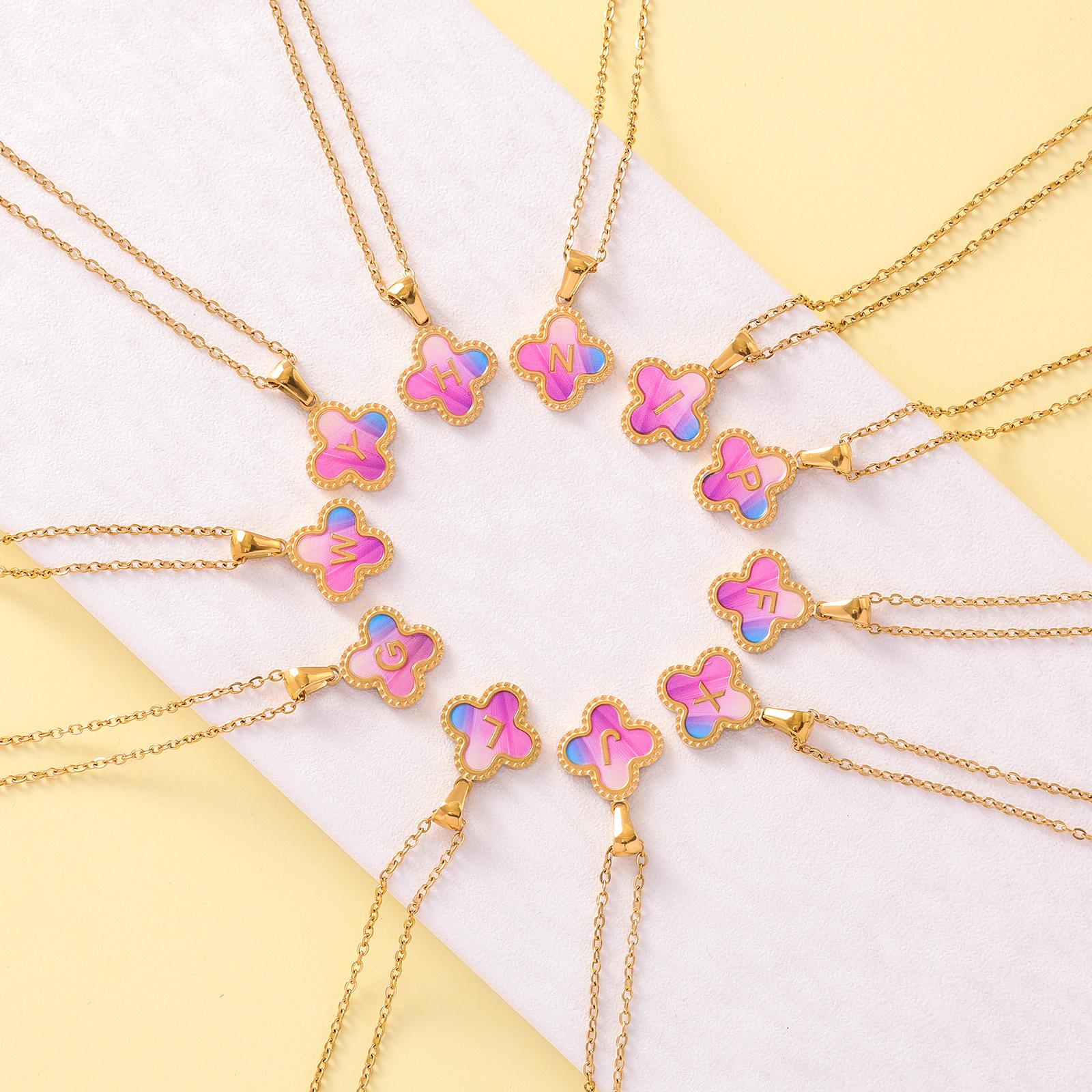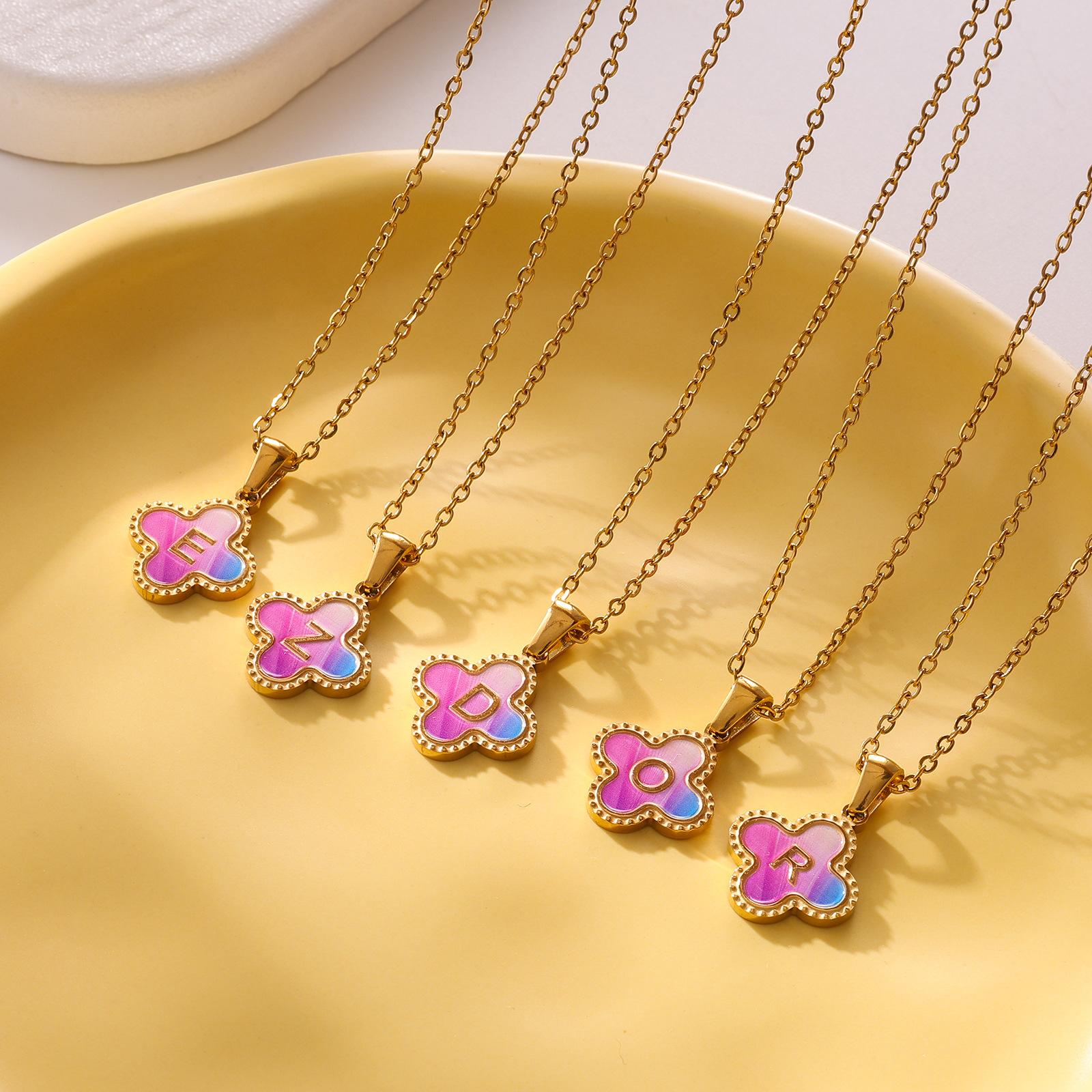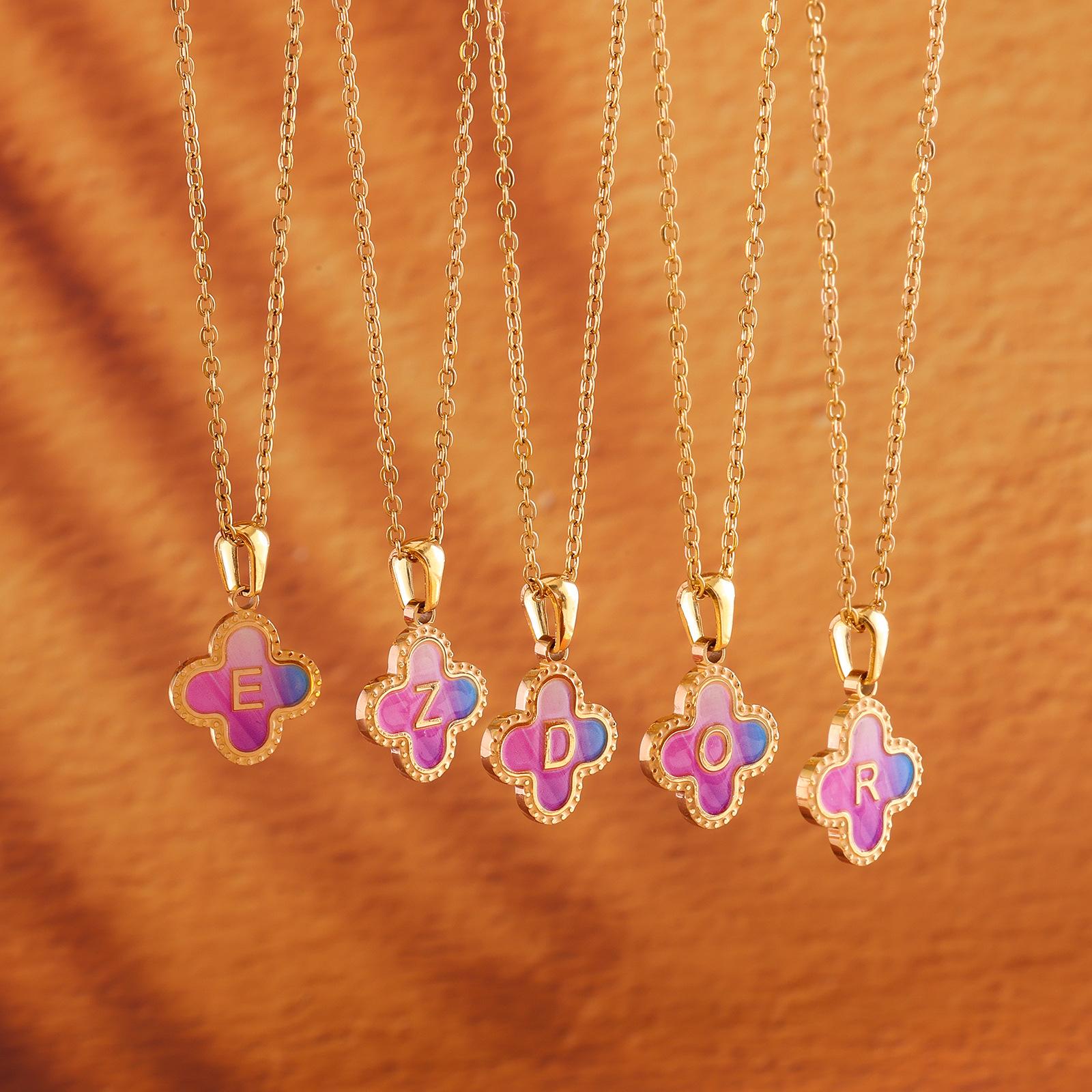 Long Rui Cross-border Nova Flor de Quatro Folhas 26 Letras Aço Inoxidável Pingente Luz Luxo Nicho Feminino Colar de Alta Qualidade
