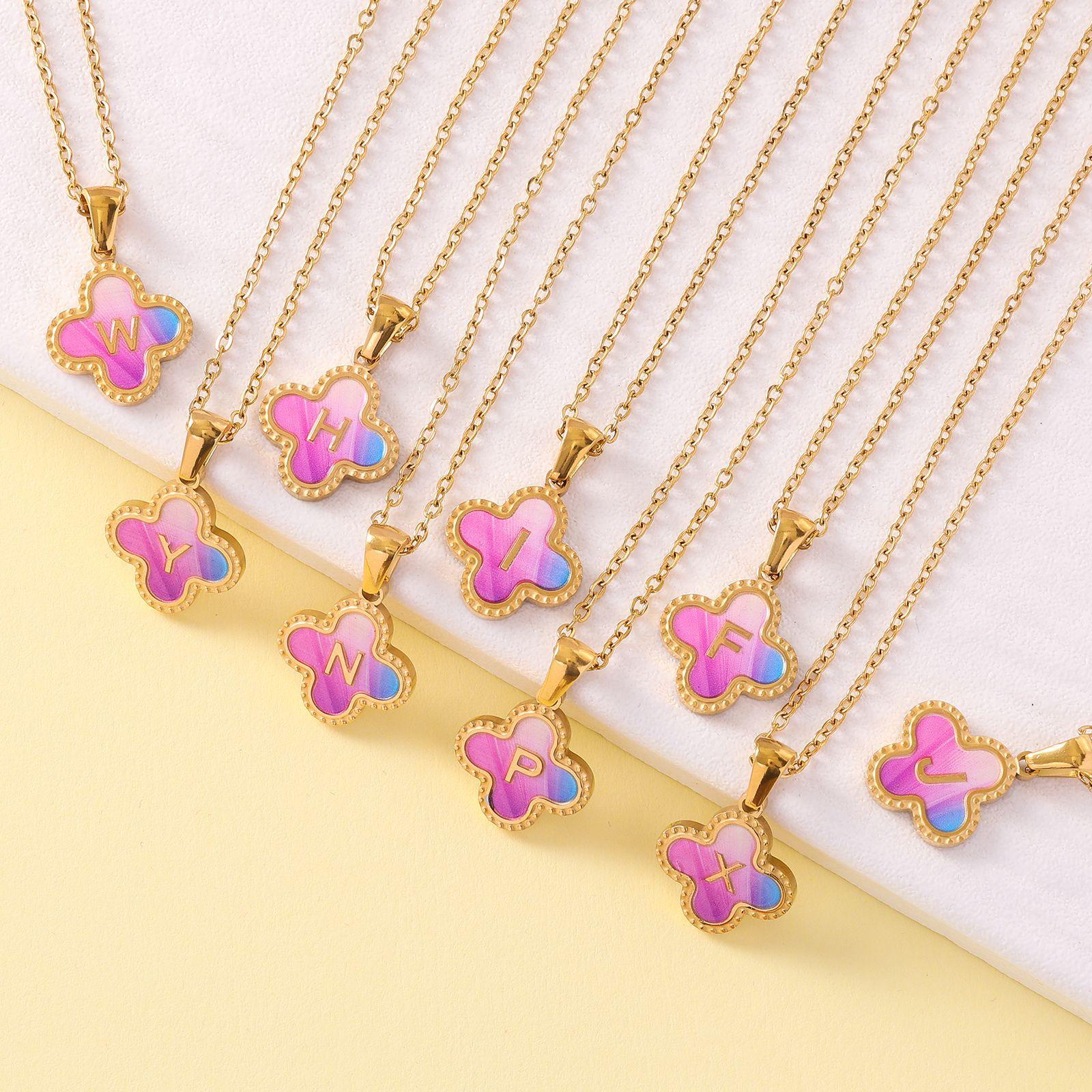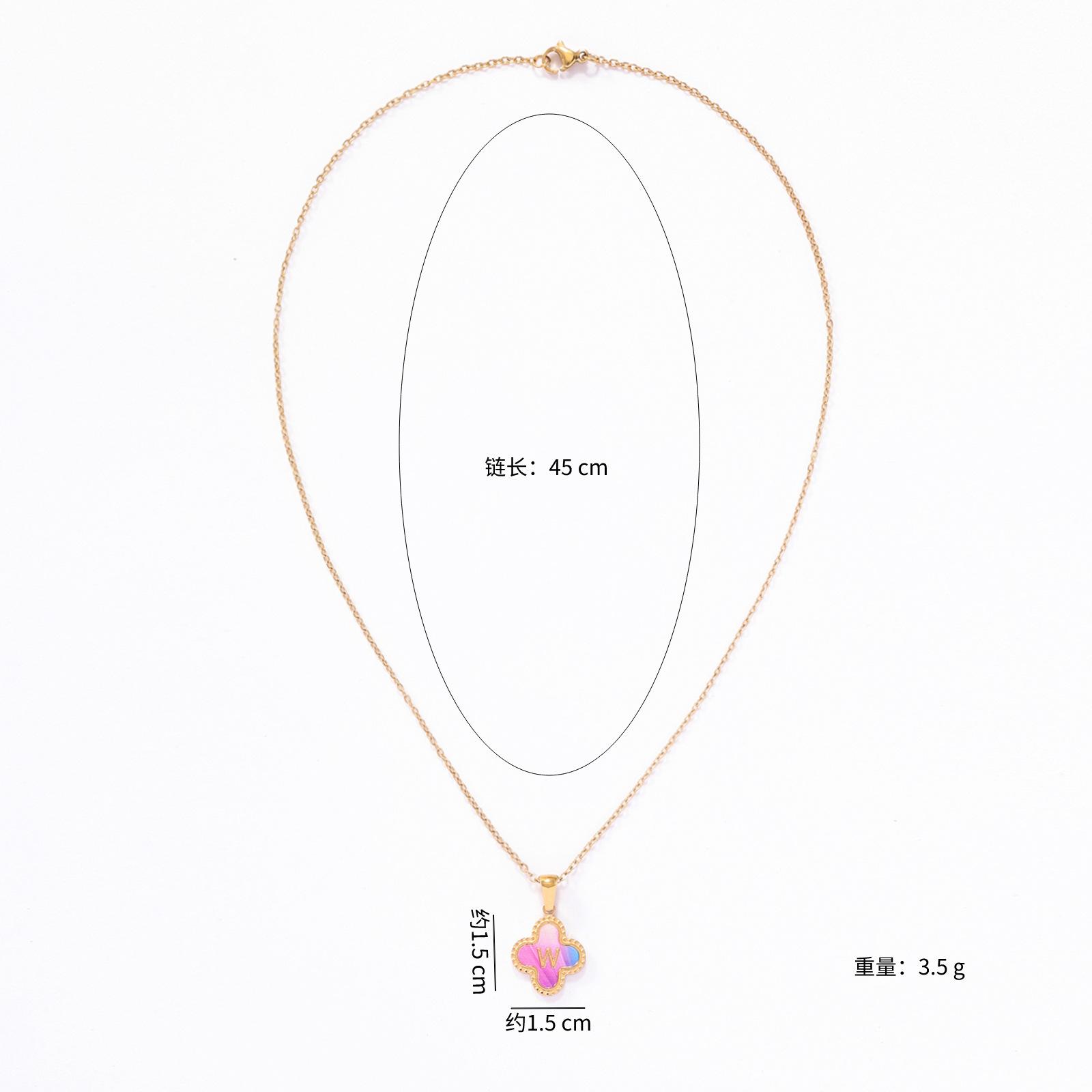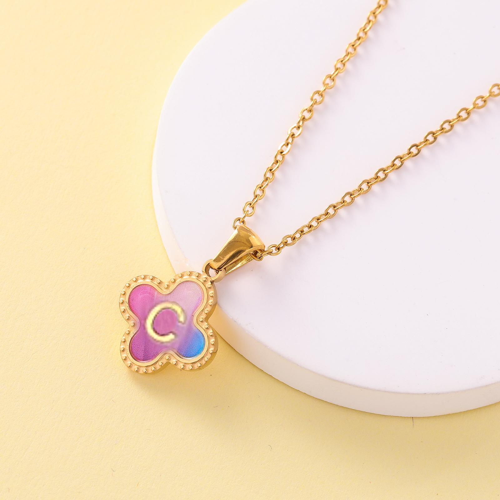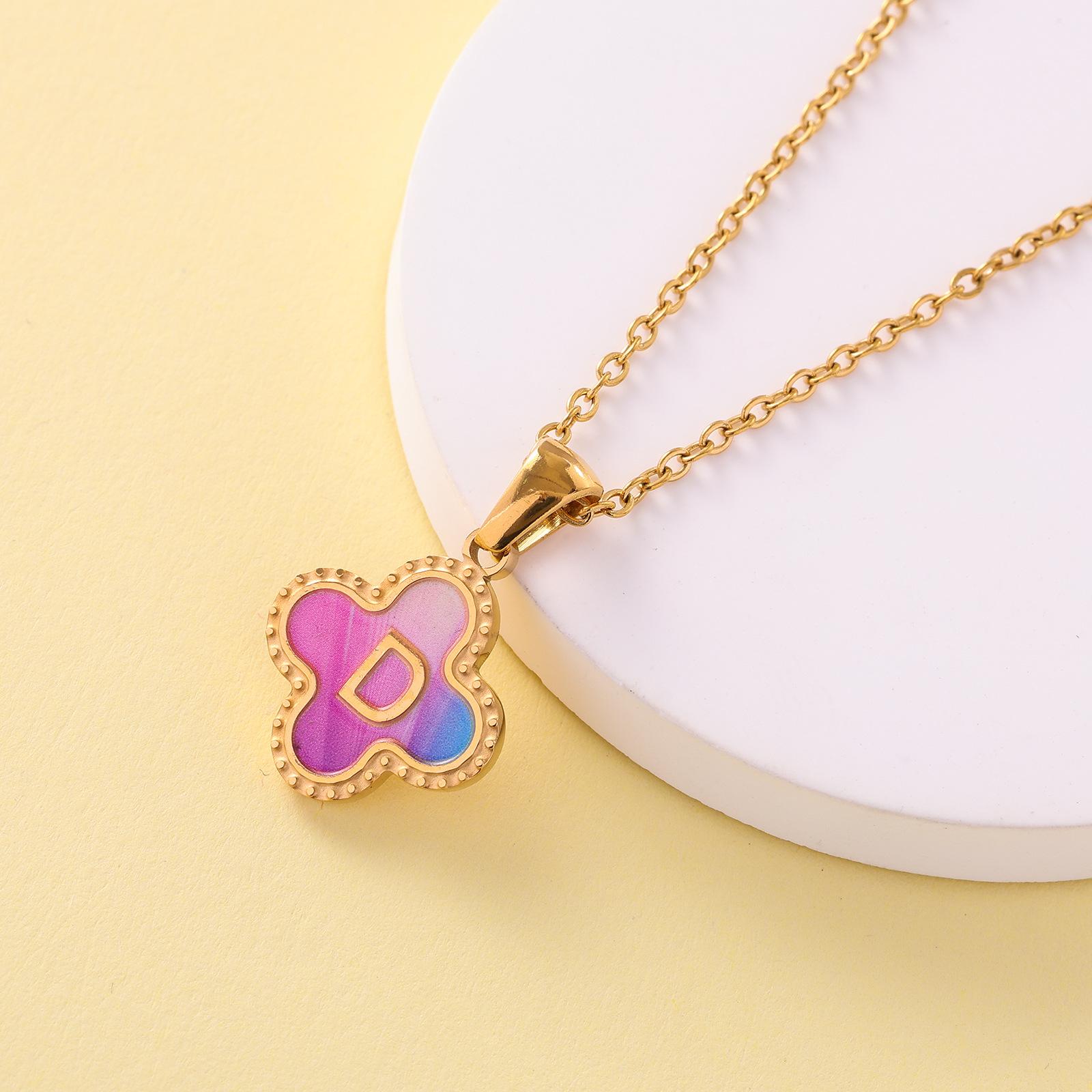 Long Rui Cross-border Nova Flor de Quatro Folhas 26 Letras Aço Inoxidável Pingente Luz Luxo Nicho Feminino Colar de Alta Qualidade