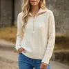 Loja Independente da Amazon Outono e Inverno Novo Estilo Gola Lapela Meio Zíper Tricô Trançado Suéter Top Cor Sólida Pulôver Suéter de Tricô Torcido