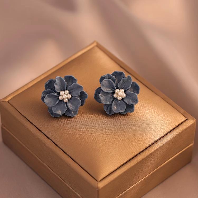Blue pearl flower earrings, Blue pearl flower mosquito coil ear clip