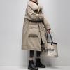 Jaqueta de penas feminina de comprimento médio acima do joelho 2024 nova jaqueta coreana branca de pato solta com capuz inverno espessada casual