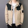Jaqueta à prova de vento para primavera e outono, jaqueta masculina com capuz para atividades ao ar livre, nova jaqueta masculina casual solta e elegante