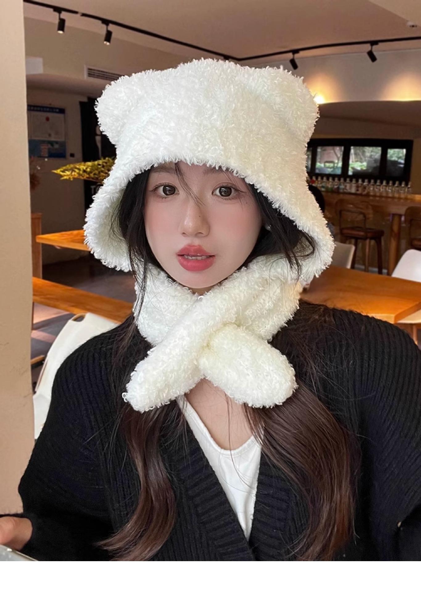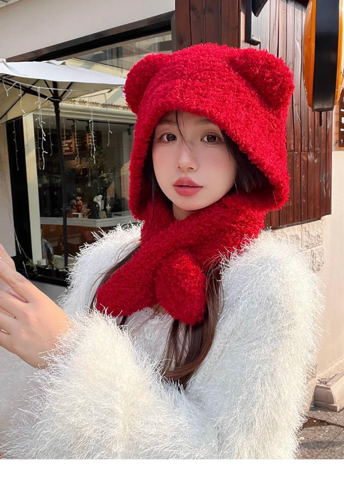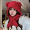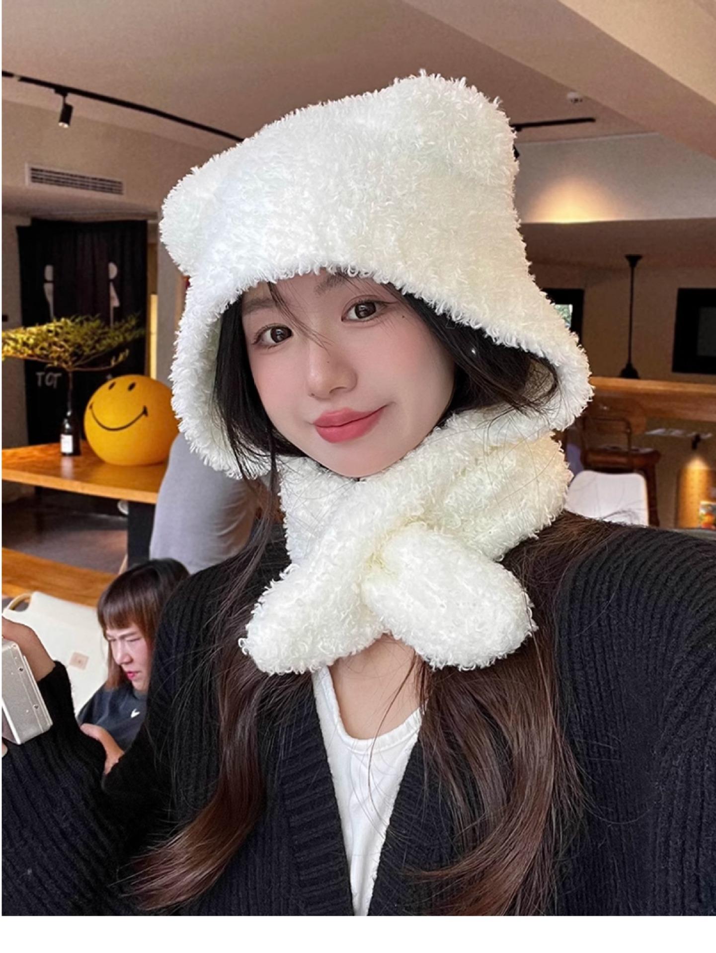 Chapéu cachecol conjunto de duas peças pelúcia urso orelhas malha lã chapéu outono e inverno proteção quente orelha Lei Feng chapéu para mulheres