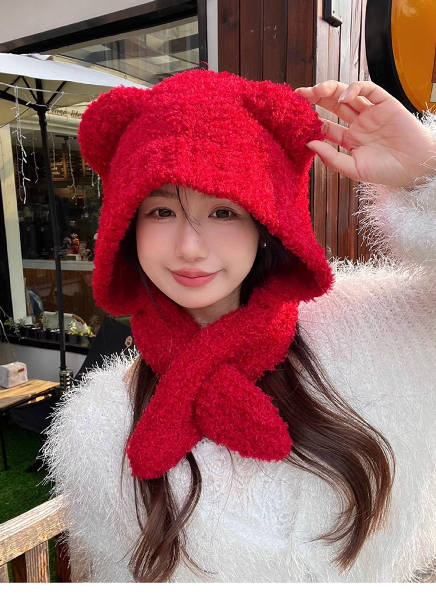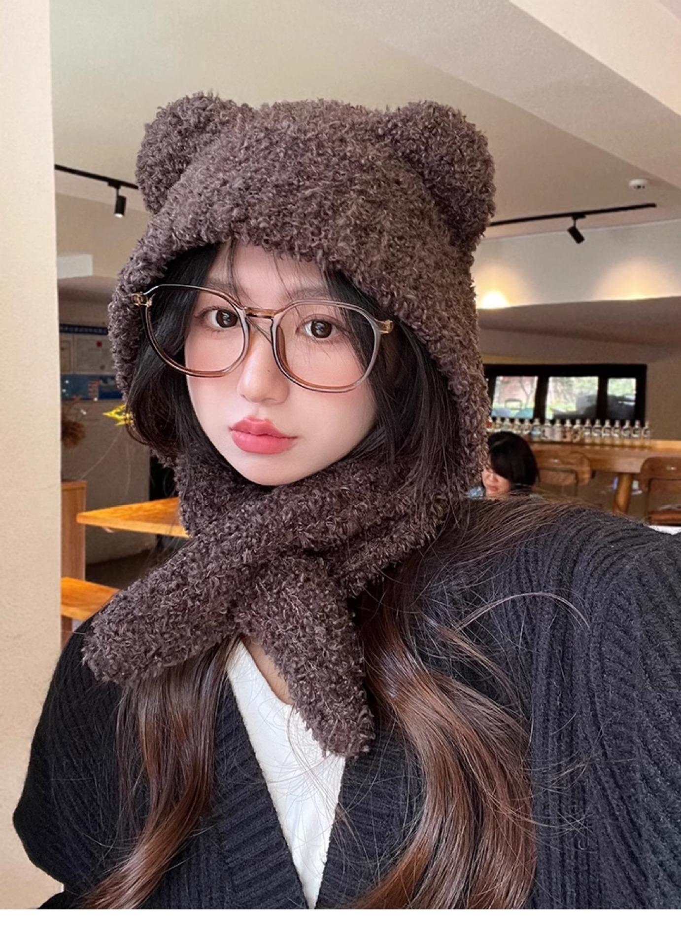 Cachecol Chapéu Um Pelúcia Bonito Urso Orelha Chapéu de Malha Outono e Inverno Proteção Auricular Quente Lei Feng Chapéu Baotou Chapéu Mulheres