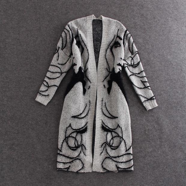 Cardigã Solto Elegante Estilo Europeu e Americano Outono/Inverno 2025 Suéter de Manga Longa Longo Tricotado Casaco para Mulheres