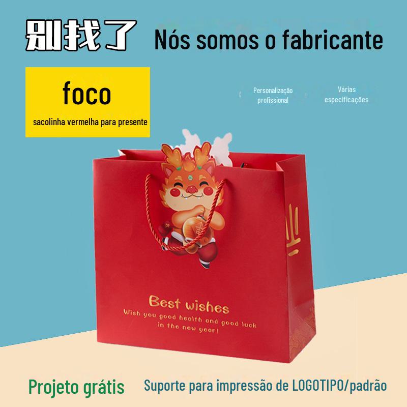 Sacola de presente de ano novo, sacola de papel kraft 2024, Ano do Dragão, Festival da Primavera, bolsa vermelha, embalagem de presente, logotipo57preço com desconto:57