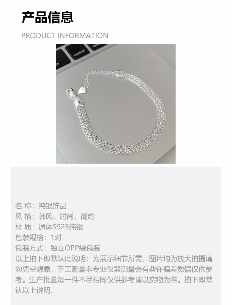 Pulseira de prata esterlina 925 com várias camadas e indústria pesada, design de nicho feminino, moda, pulseira de tecido hip-hop legal