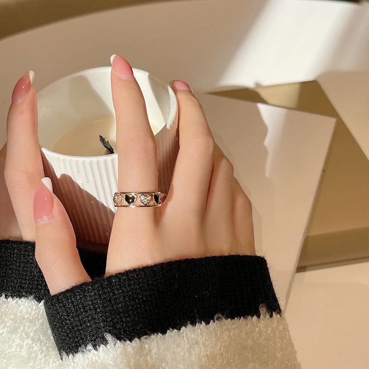 Anel de amor feminino requintado anel de zircão incrustado de diamante leve luxo moda de alta qualidade ajustável dieta anel de dedo anel de nicho