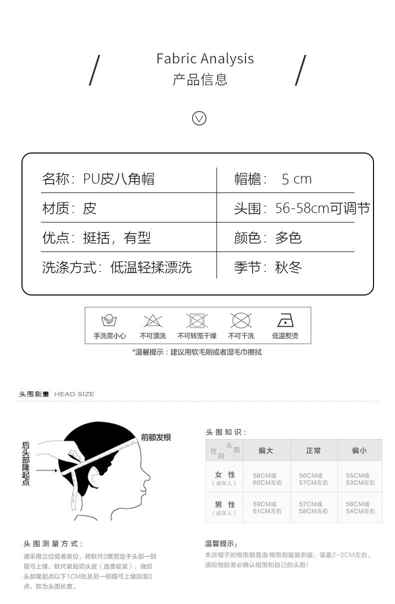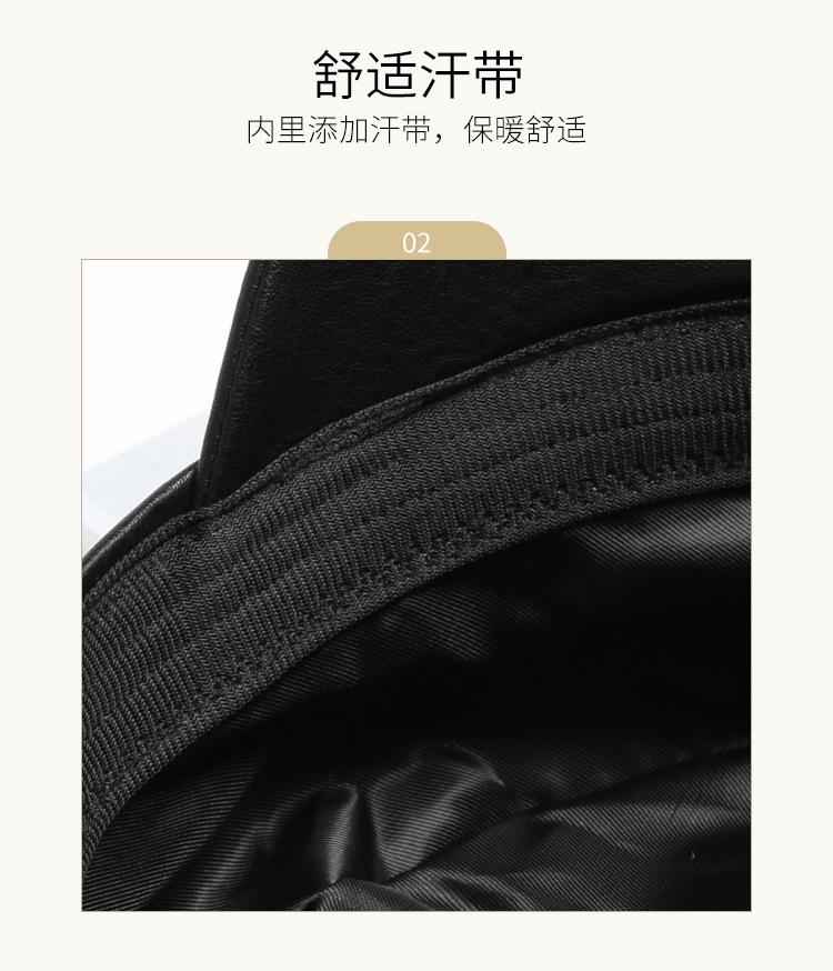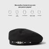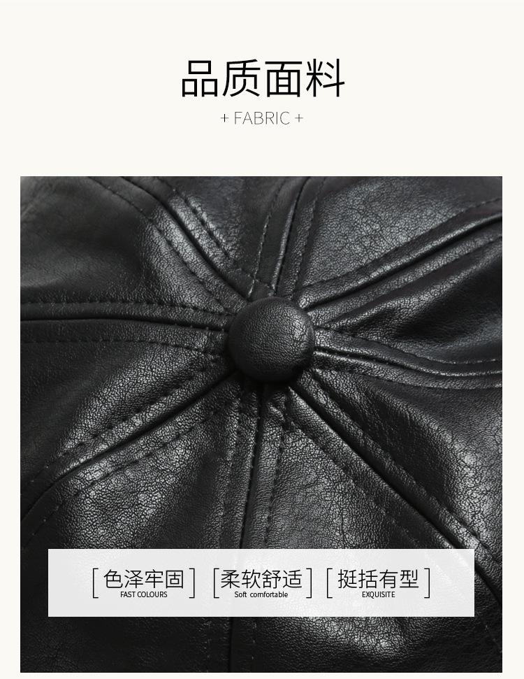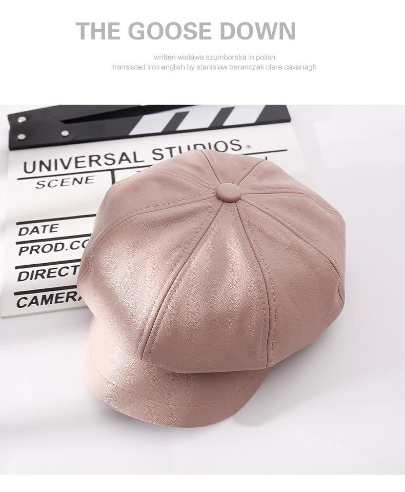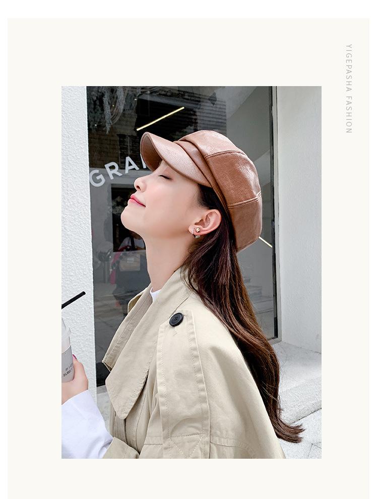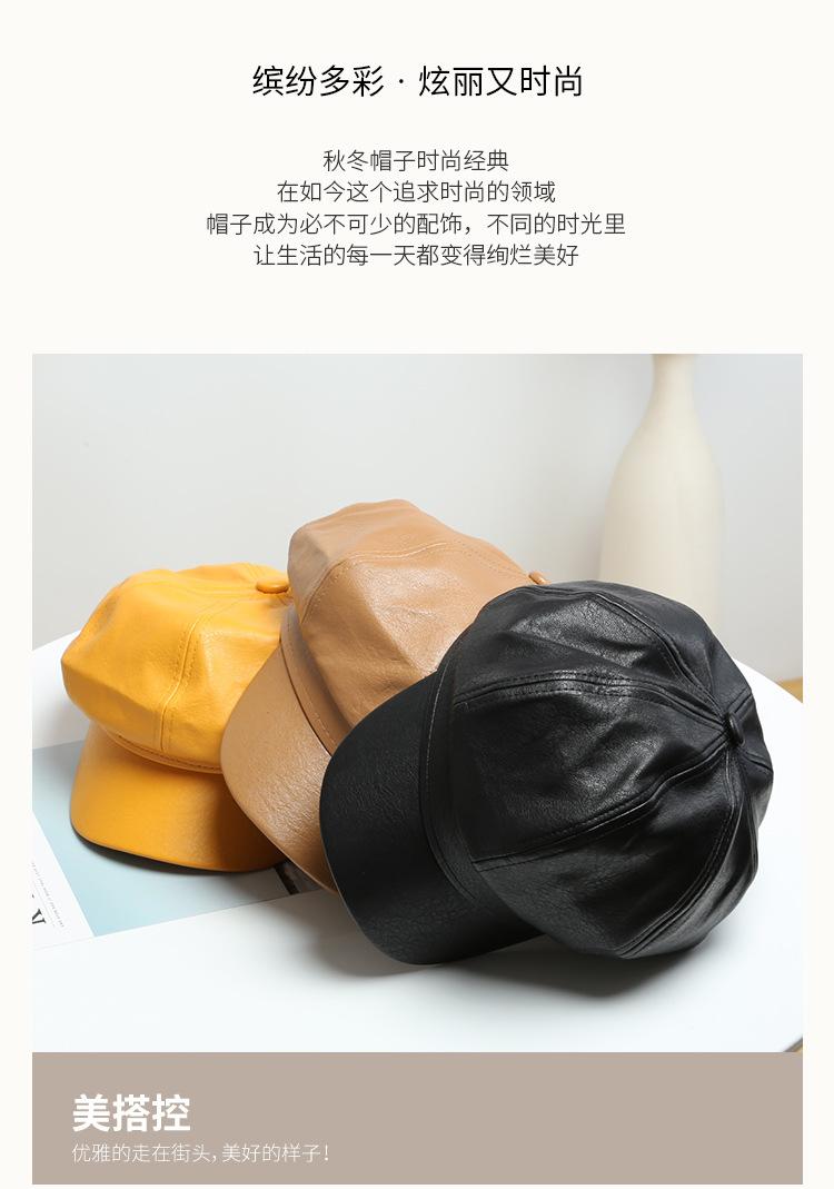 Chapéu Octogonal de Couro PU Preto para Mulheres, Chapéu de Couro Versátil da Moda Tendência Outono e Inverno, Chapéu de Pintor, Boné de Beisebol, Boina