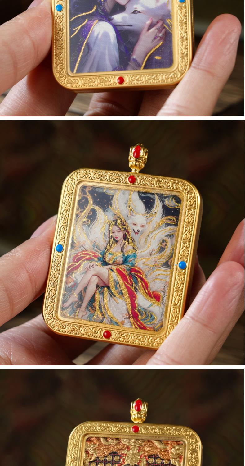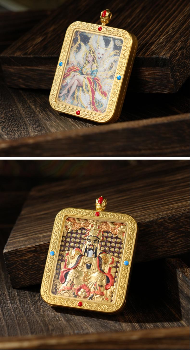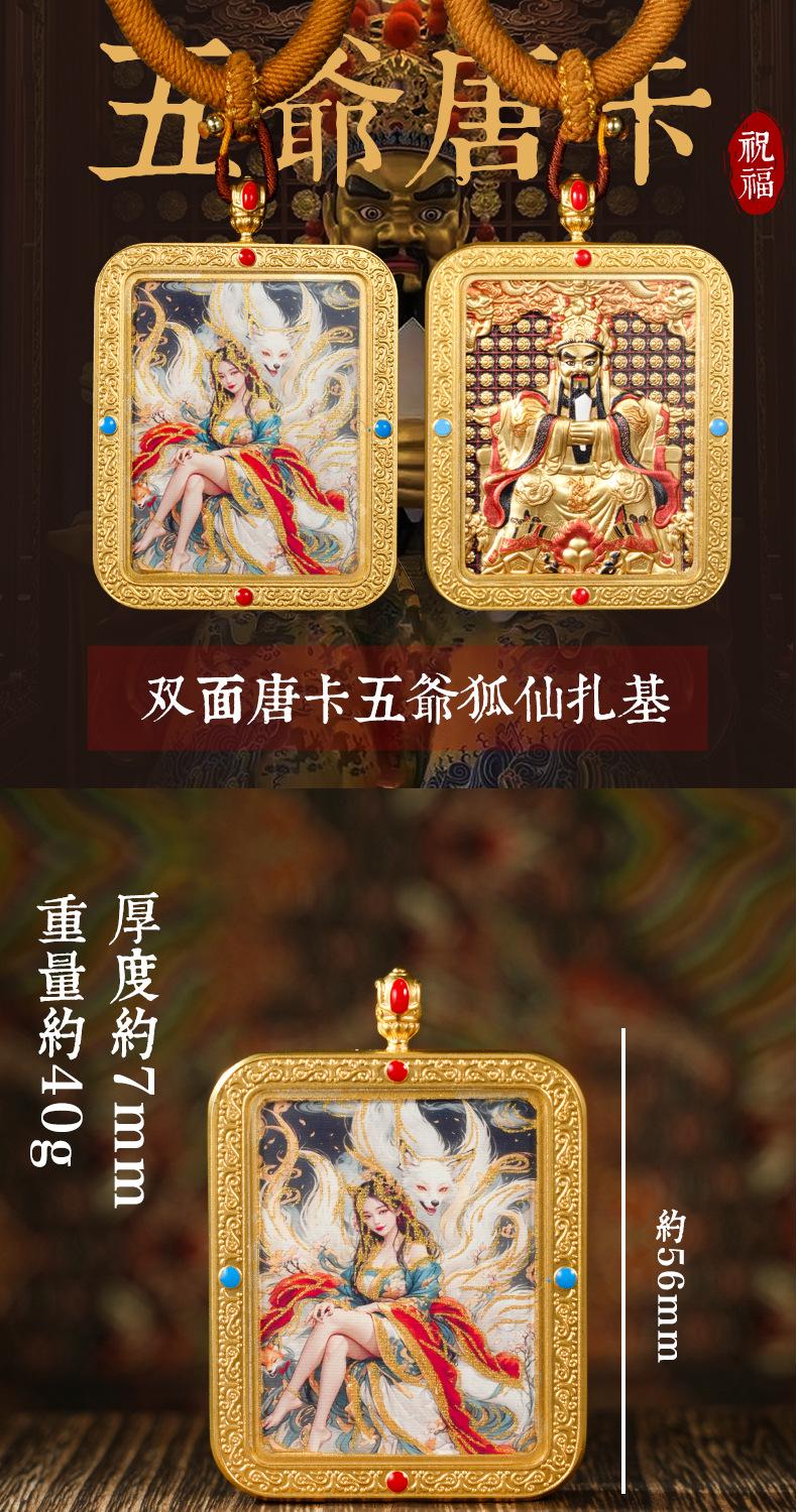 Monte Wutai Bênção Thangka Dupla face Tridimensional Cinco Mestre Pingente Raposa Fada Raposa de Nove Caudas Zakilam Mãe Verde Deus Amarelo da Riqueza