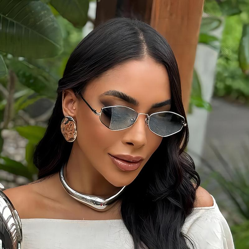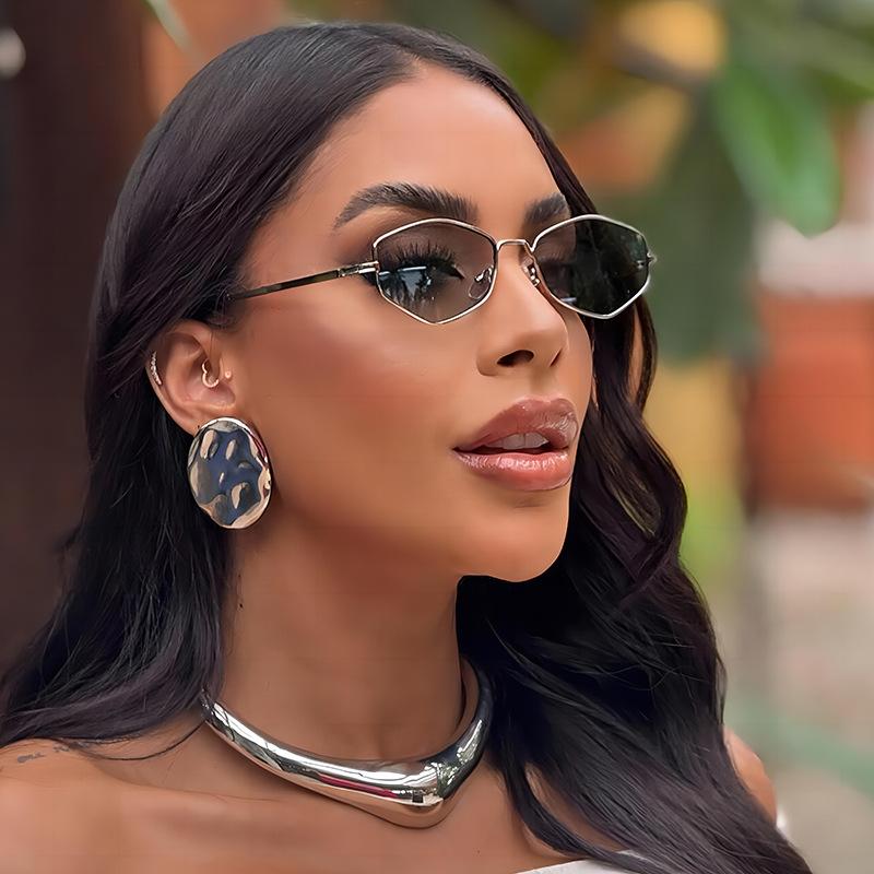 Novos óculos de sol de metal com proteção solar de polígono da moda, óculos de sol personalizados europeus e americanos transfronteiriços, óculos de sol avançados