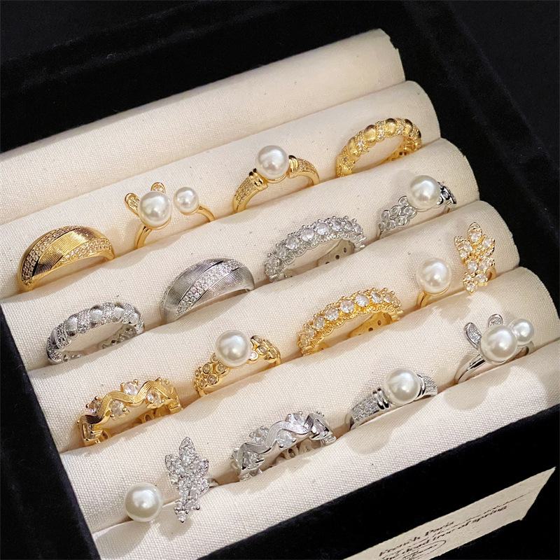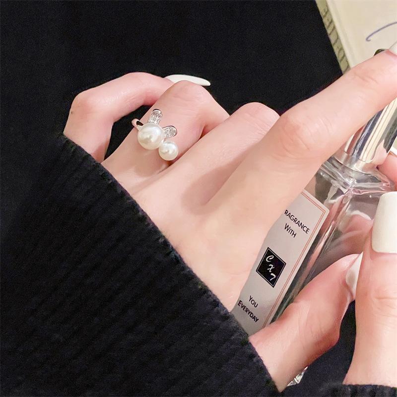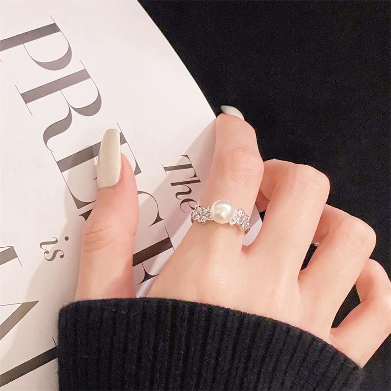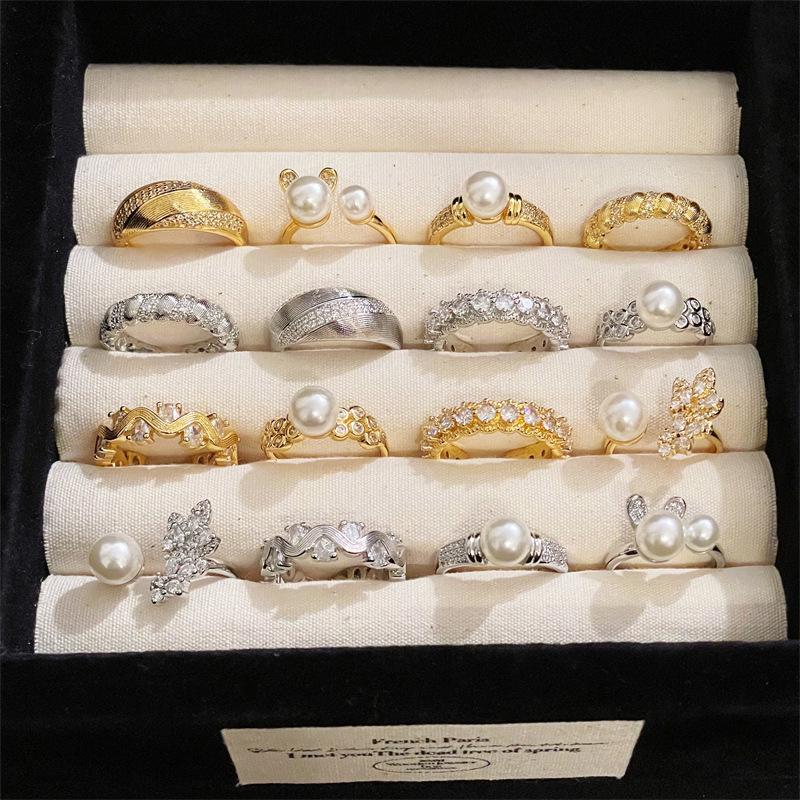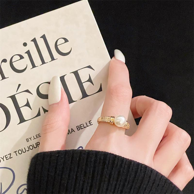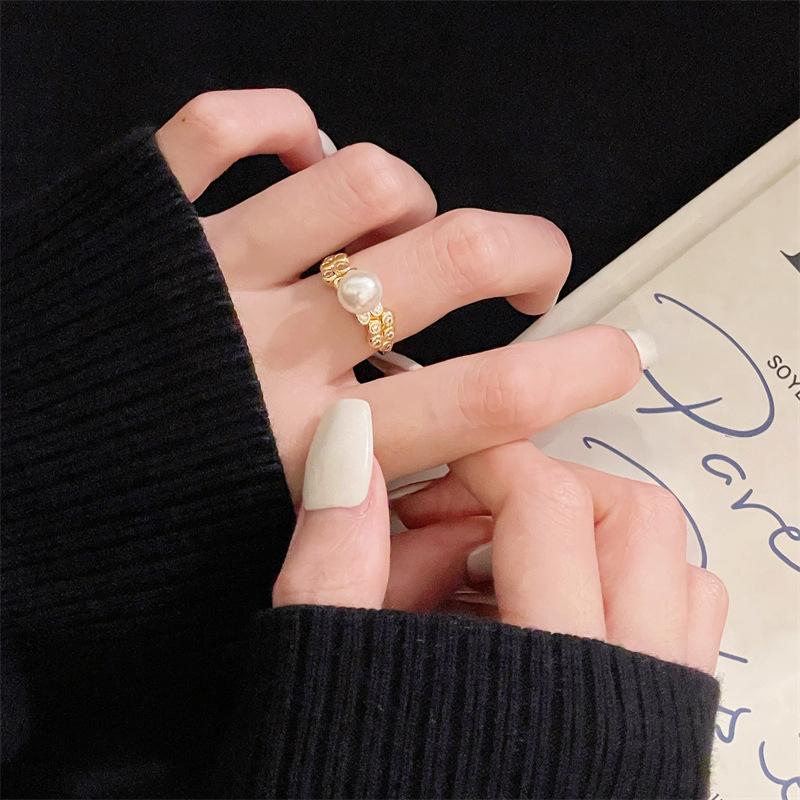 Anel Aberto Pérola Vintage Retrô Personalidade Antiga Média Estilo Francês Luz Luxo High-end Nicho para Mulheres