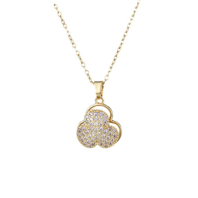 Colar Feminino Celebridade da Internet Transfronteiriça Zircônia Rotativa Flor de Três Folhas Nicho Moda Novo Design Pingente Temperamento Corrente Clavicular