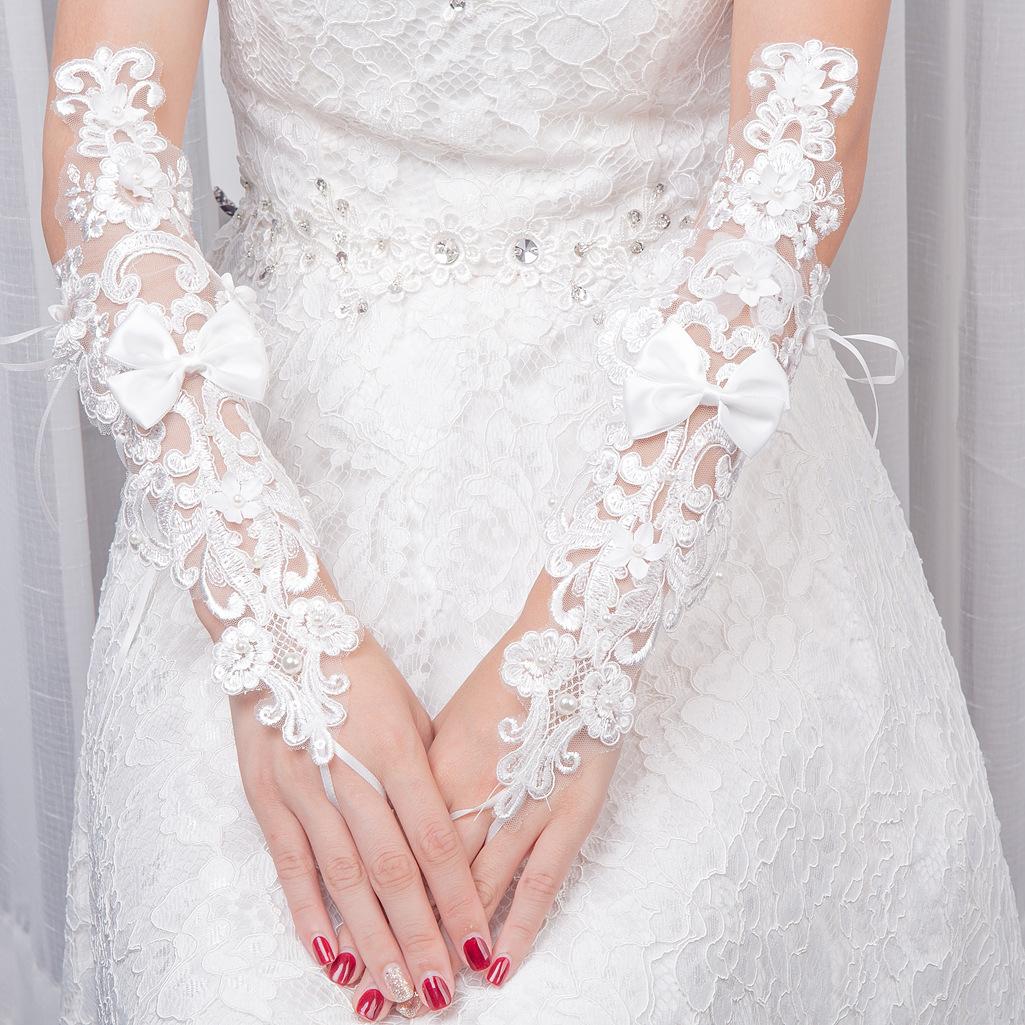 Luvas de casamento nupcial flor arco bordado oco acessórios branco casamento luvas longas atacado