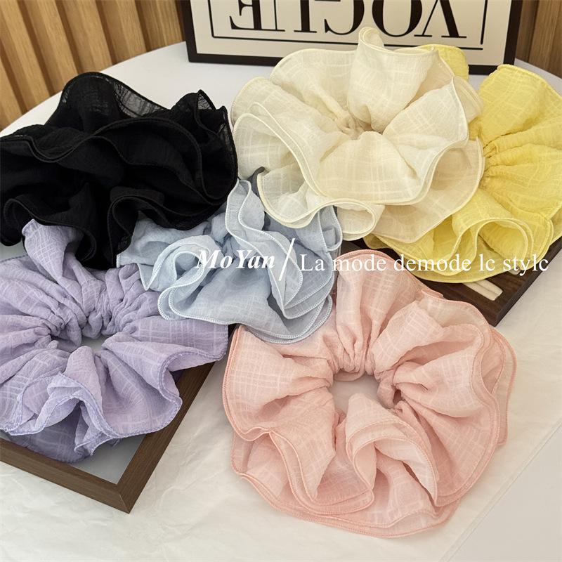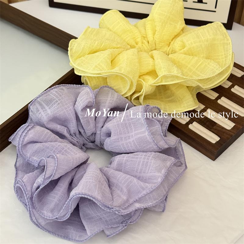 Estilo coreano multicamadas de madeira plissada orelha borda intestino grosso anel de cabelo atmosfera sentido verificar textura cabeça flor temperamento preguiçoso corda de cabelo cabeça corda