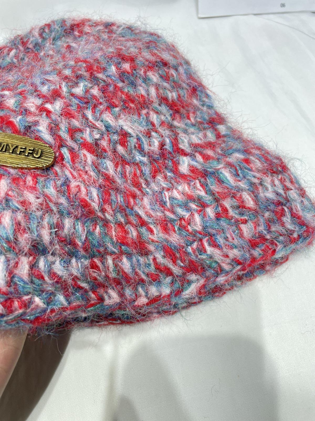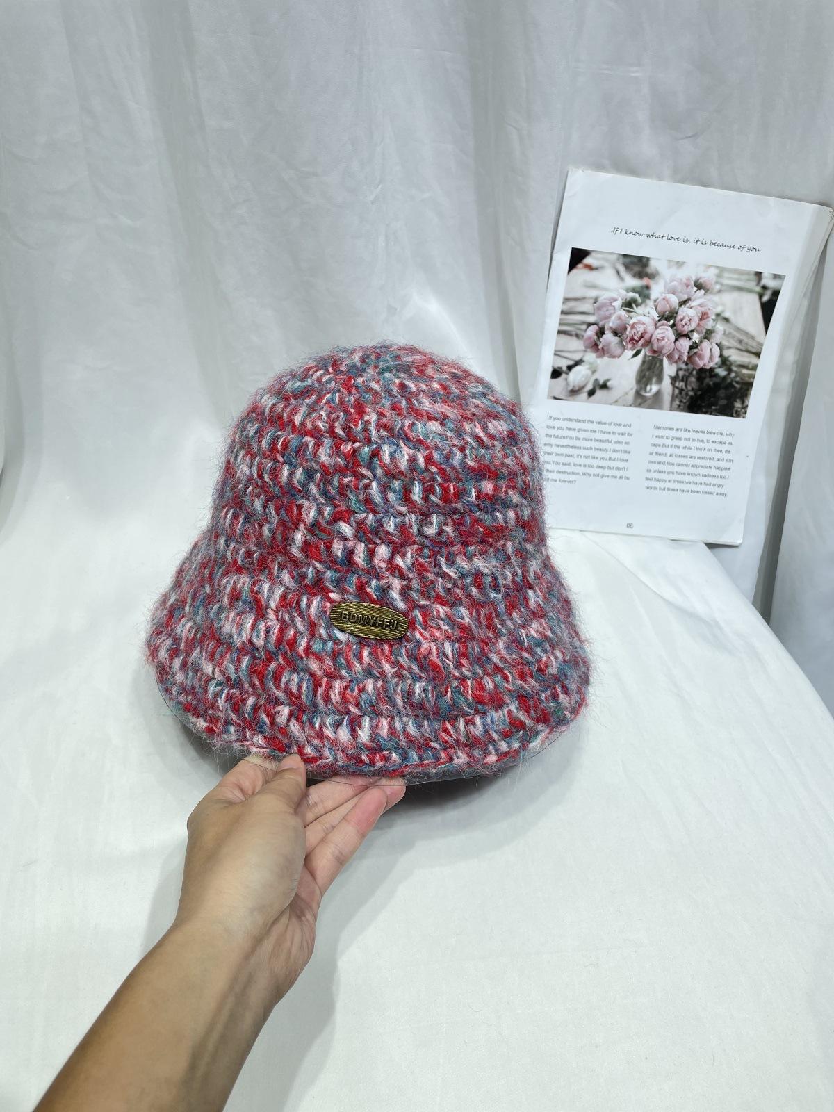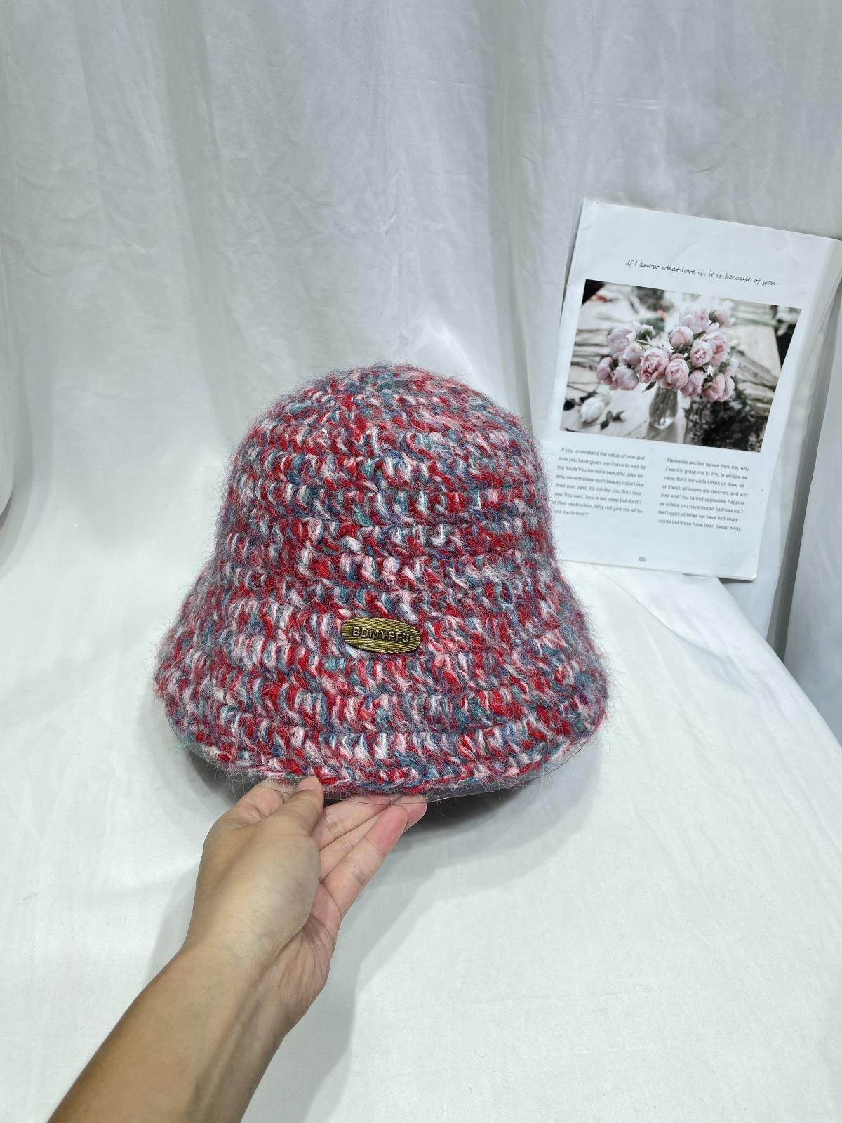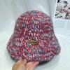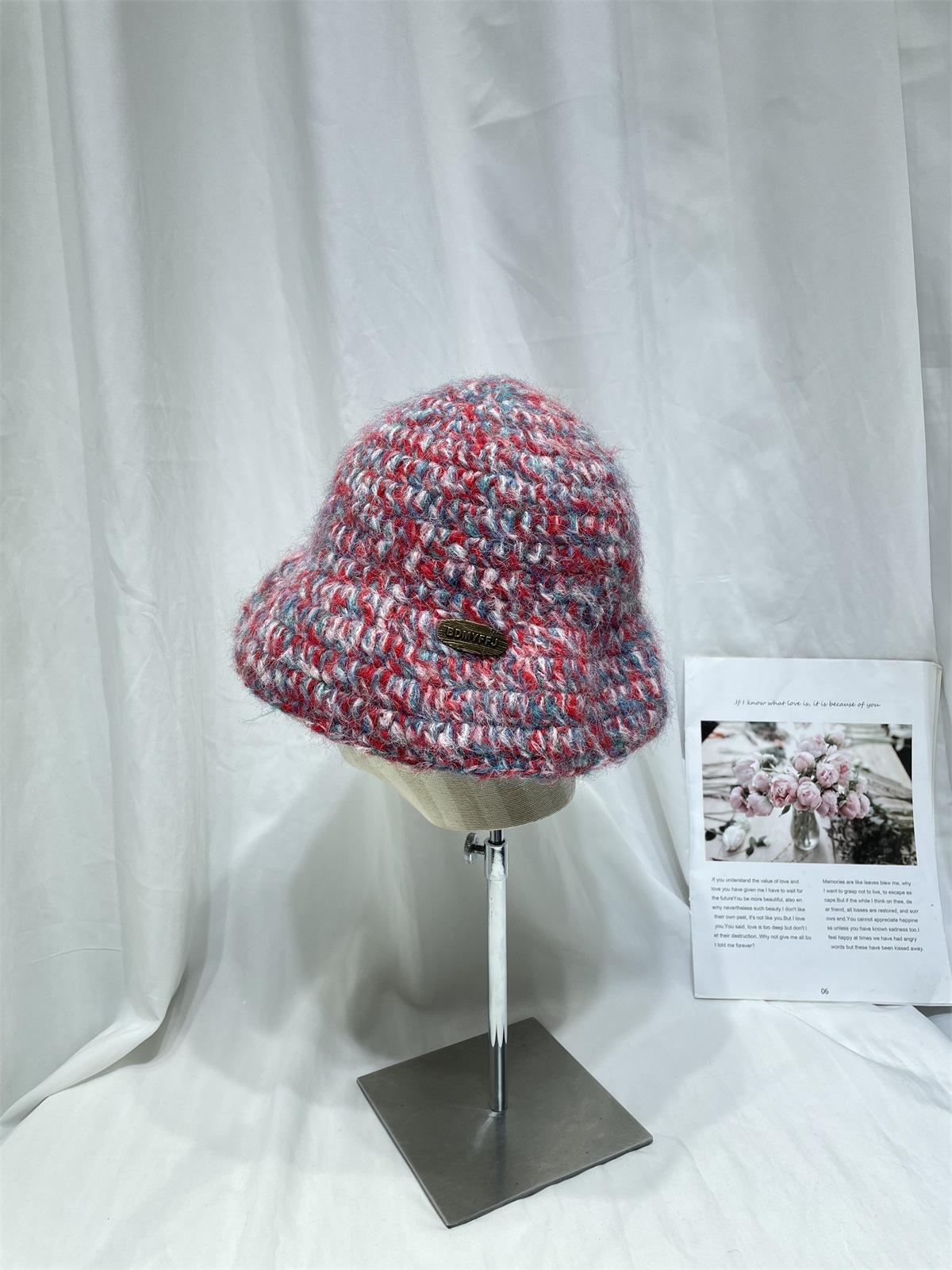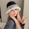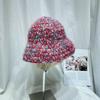 Chapéu de pescador de malha de metal de cor mista da moda coreana para mulheres, chapéu de balde quente para outono e inverno, rosto pequeno e casual